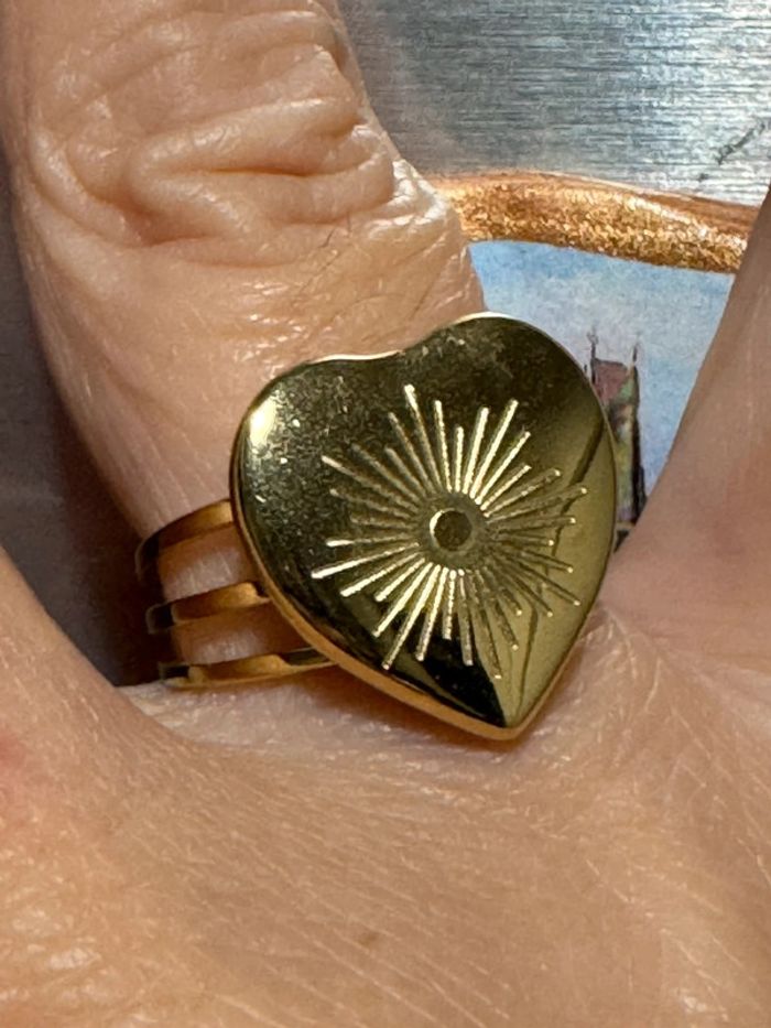 Bague cœur épais étoile soleil acier inoxydable or réglable mile Mila