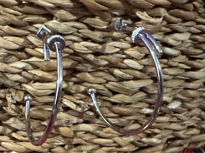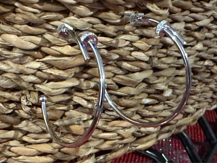 Boucles d’oreilles acier inoxydable argent de qualité créoles finition clou cristaux neuve dans pochon et pochette
