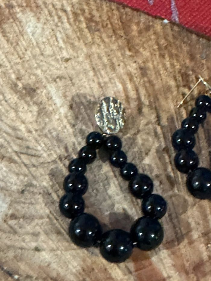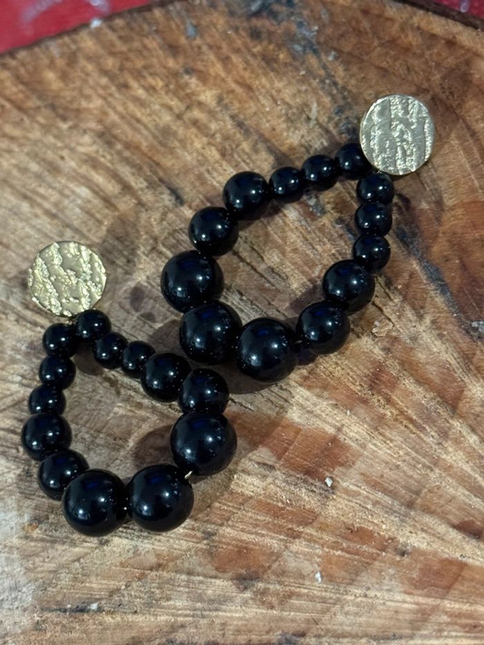 Boucles d’oreilles perles noires acier inoxydable or - photo numéro 1