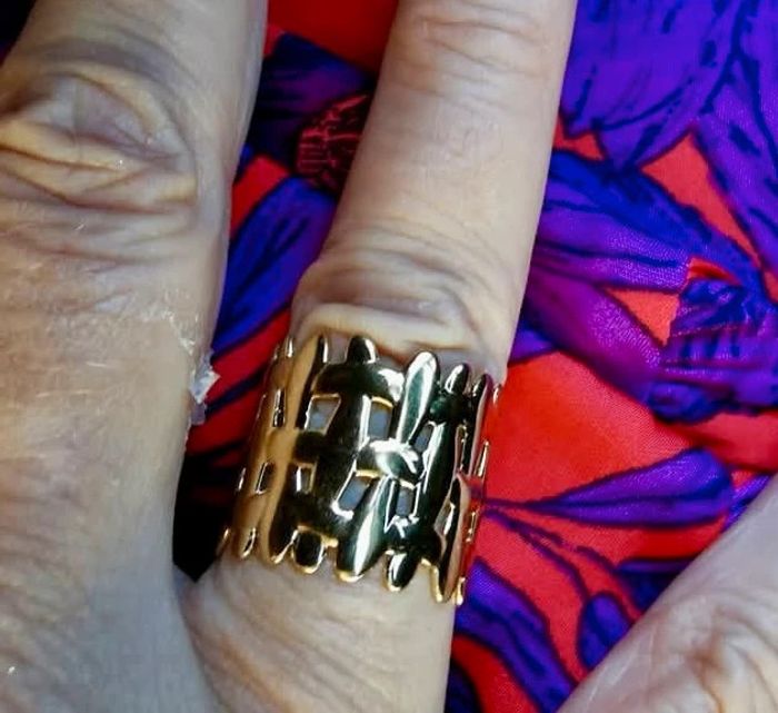 Bague large réglable acier inoxydable or arabesque neuve - photo numéro 3