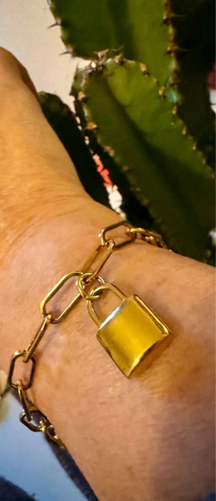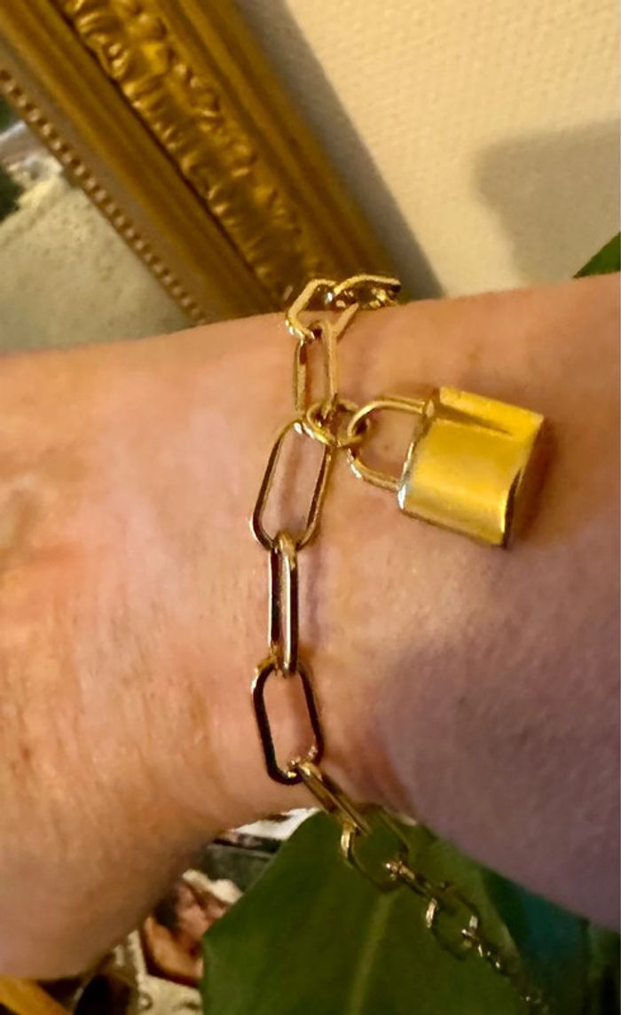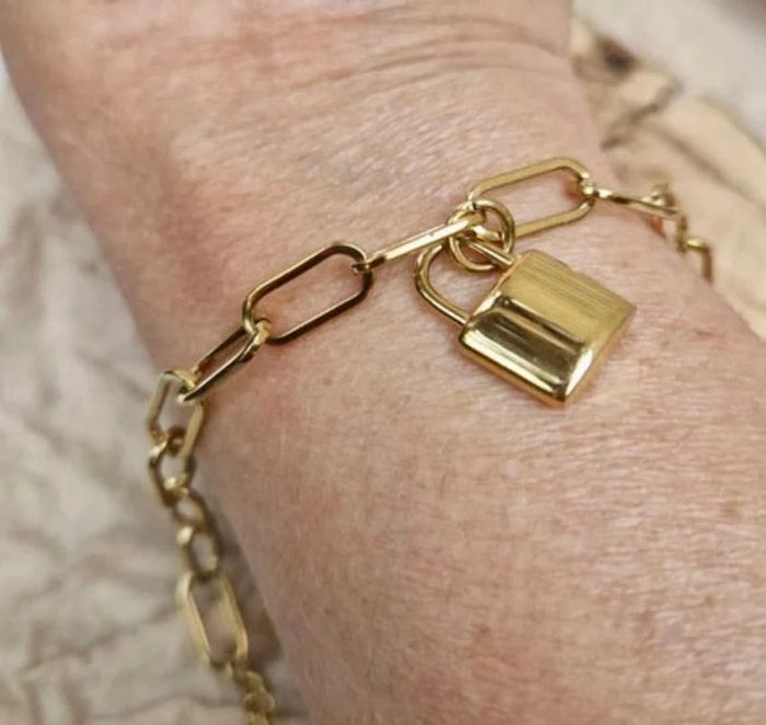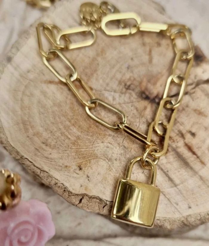Bracelet neuf. Réglable en acier inoxydable or. Cadenas xl en breloque. Dans pochon et pochette