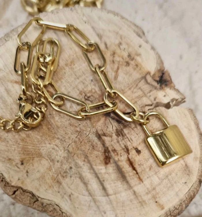 Bracelet mailles larges réglable acier inoxydable or cadenas xl en breloque - photo numéro 4