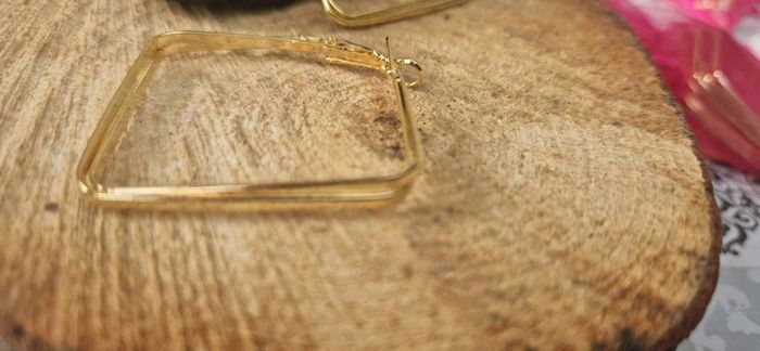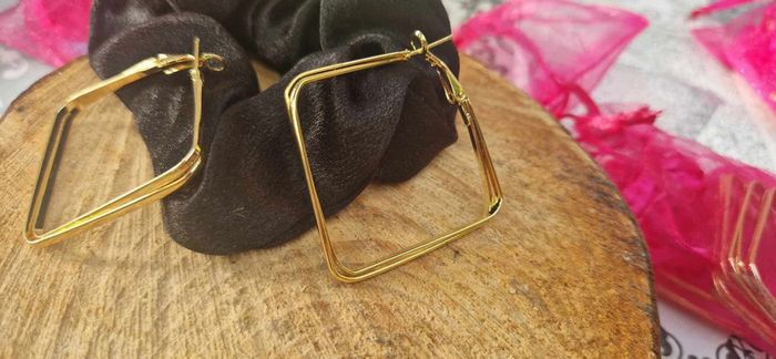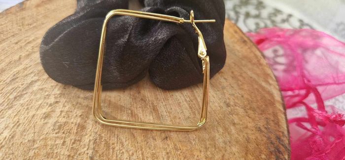 Grosse créoles carrées acier inoxydable or neuve - photo numéro 3