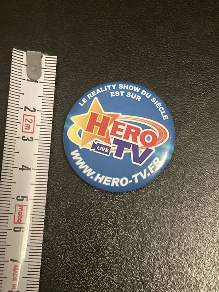 Badge de l'univers de la série animée Tiger and Bunny à l'effigie de Hero TV Live. En excellent état. Taille : environ 3,5 cm de diamètre.