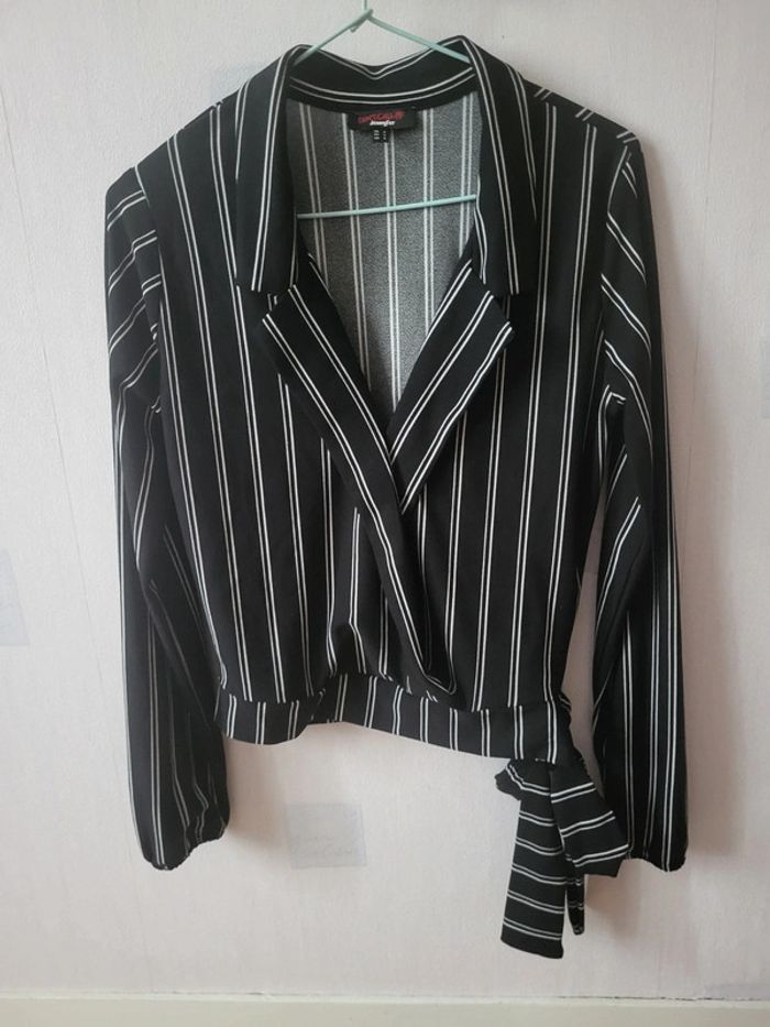 Je fais le tri et renouvelle ma garde robe : Chemise très légère à porter et très habillée avec son croisé et petit noeud sur le devant.