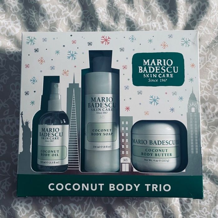 Coffret Mario Badescu set soins pour le corps à la noix de coco comprend : un savon corporel pour nettoyer et rafraichir (236 ml) une huile pour le corps (113g) Beurre pour le corps (100 ml) neuf