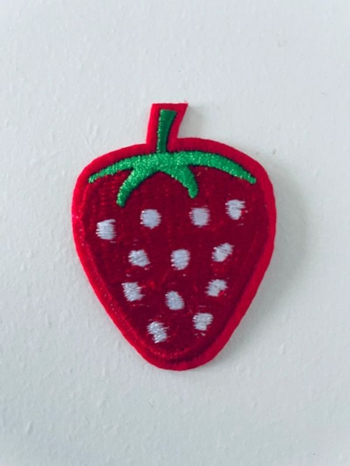 Écusson patch grosse fraise Thermocollant (a repasser) ou à coudre NOTICE jointe 🟢 largeur 4 cm 🔴 hauteur 5,3 cm Neuf N'hésiez pas à jetez un oeil, je vends beaucoup d'écussons différents et neufs , cliquez ici #bluerisecusson #couture