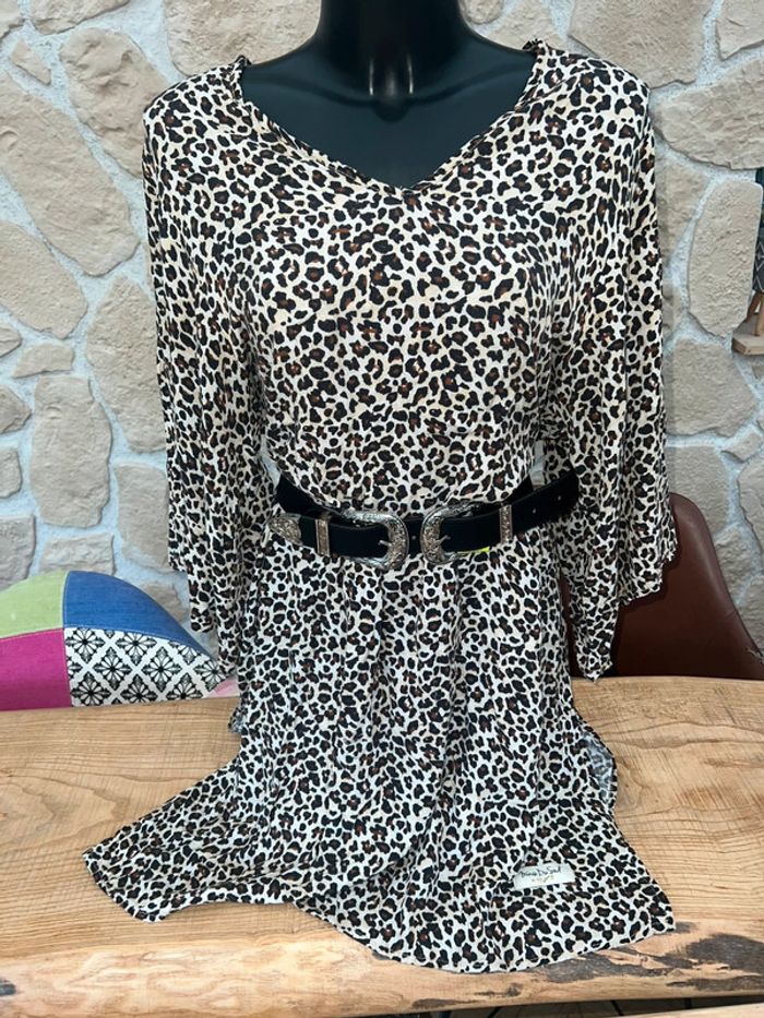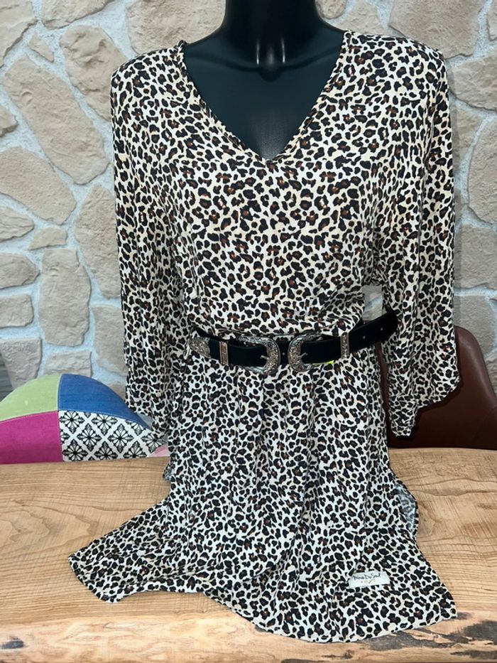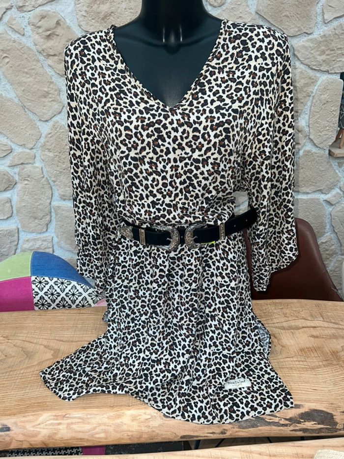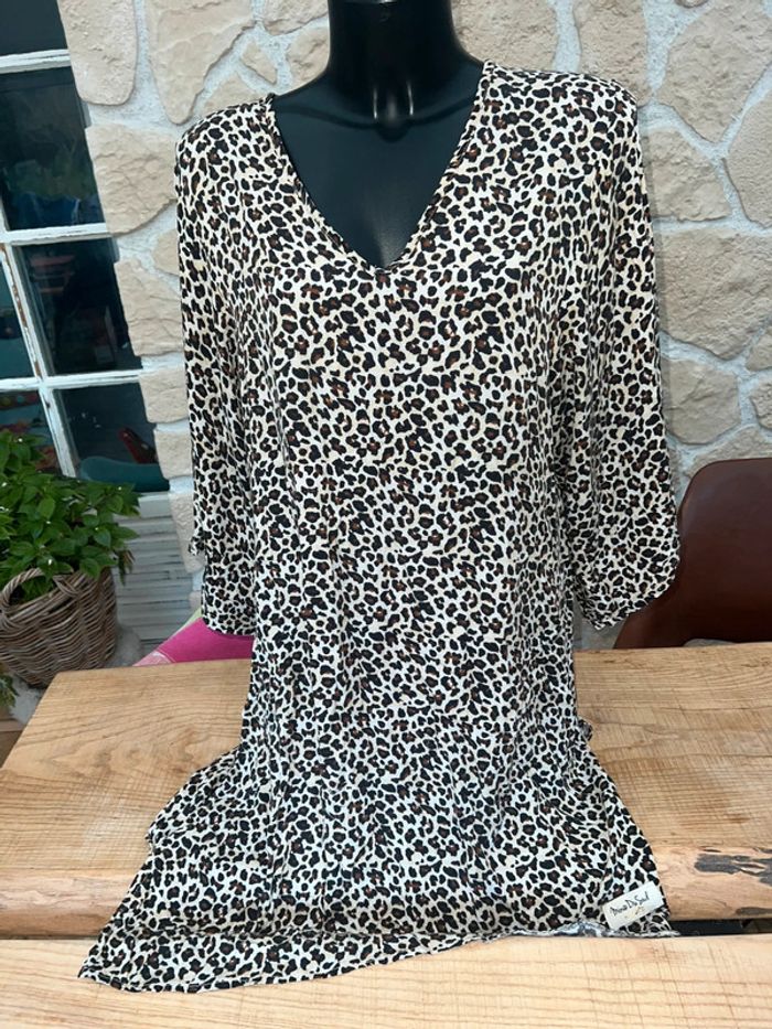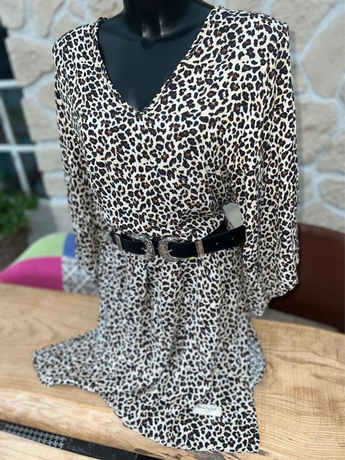 Robe MinoDuSud En très bon état Motif léopard légère parfaite de l’été Vendue sans la ceinture • Convient de la taille 36 à la taille 50 S M L XL XXL XXXL • Bien que nos vêtements ne puissent être portés de la même manière selon votre taille, ils s'accorderont aisément à votre morphologie