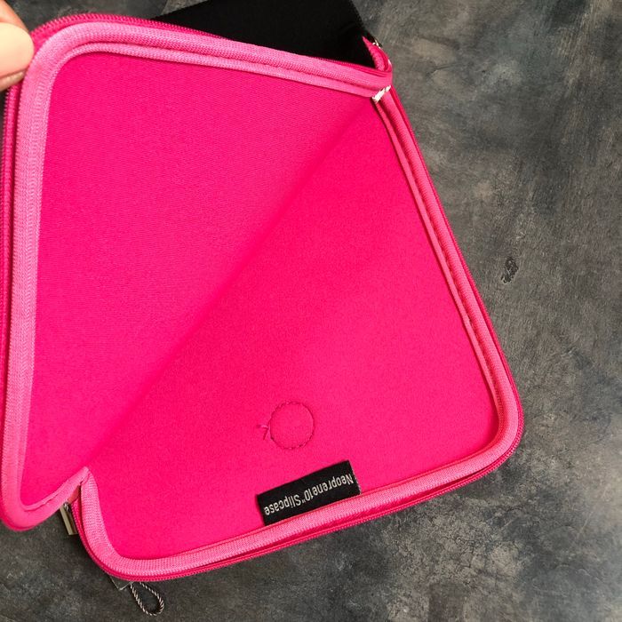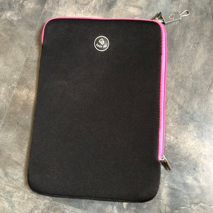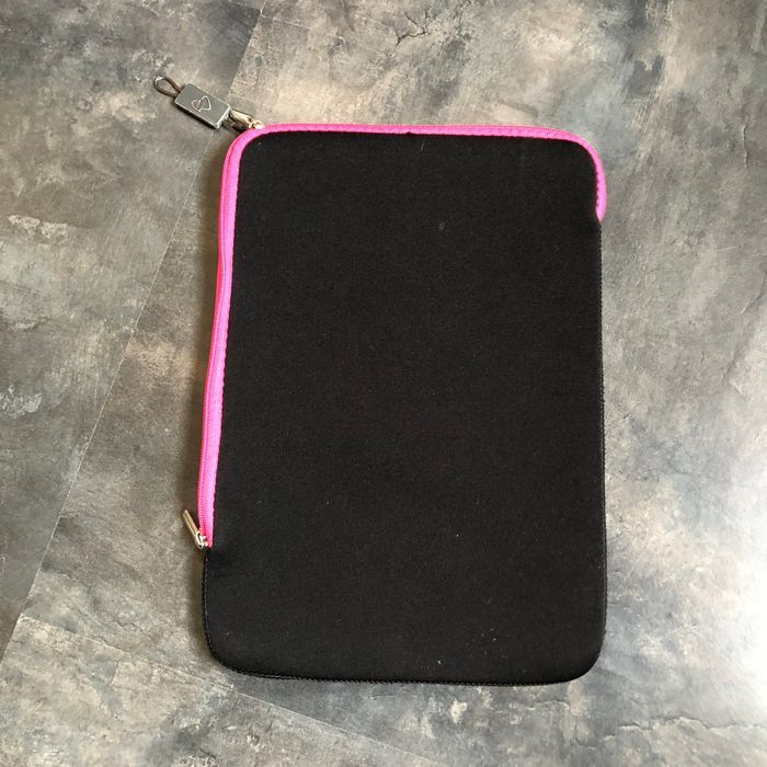 Pochette tablette en Néoprène Noir et rose fuchsia Dimensions 26,5 x 18,5 cm état neuf