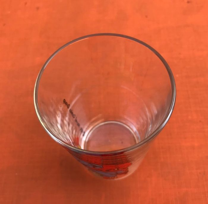 Verre décoré Spiderman (1978) France Marvel Comics Group Hauteur : 100mm Diamètre : 65mm Poids : 150grs