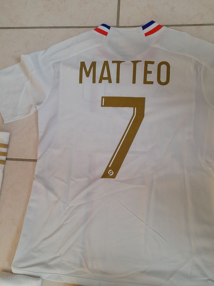 Ensemble foot OLYMPIQUE LYONNAIS comprenant le maillot + le short ainsi que les chaussettes, acheter dans la boutique officielle, taille 11/12 ans, très bon état, propre.