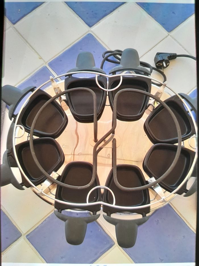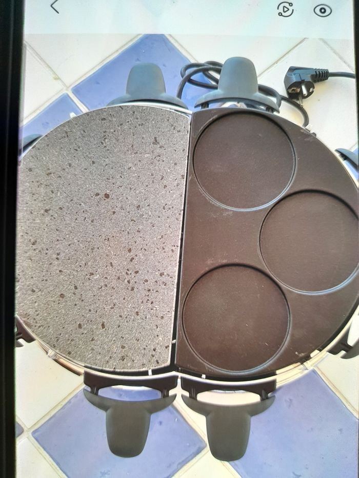 Vends appareil à raclette 4 en 1 de la marque "MOULINEX" qui allie raclette, pierre à griller, grill et crémière. Les 8 poêlons anti adhésifs permettent un nettoyage facile. Puissance 1500W, grill bouton marche/arrêt, couleur noir, très bon état, propre