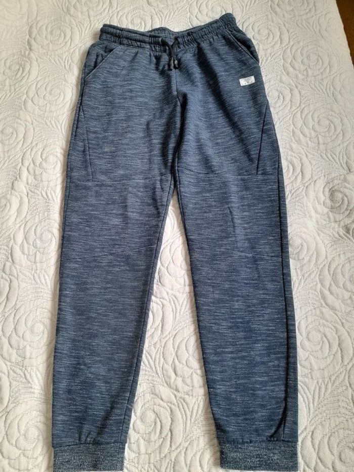 Pantalon de jogging de couleur bleue chiné, taille élastique, 2 poches de chaque côté, détail sur les jambes, petit logo sur le côté gauche de la jambe, très bon état, à été porté, propre.