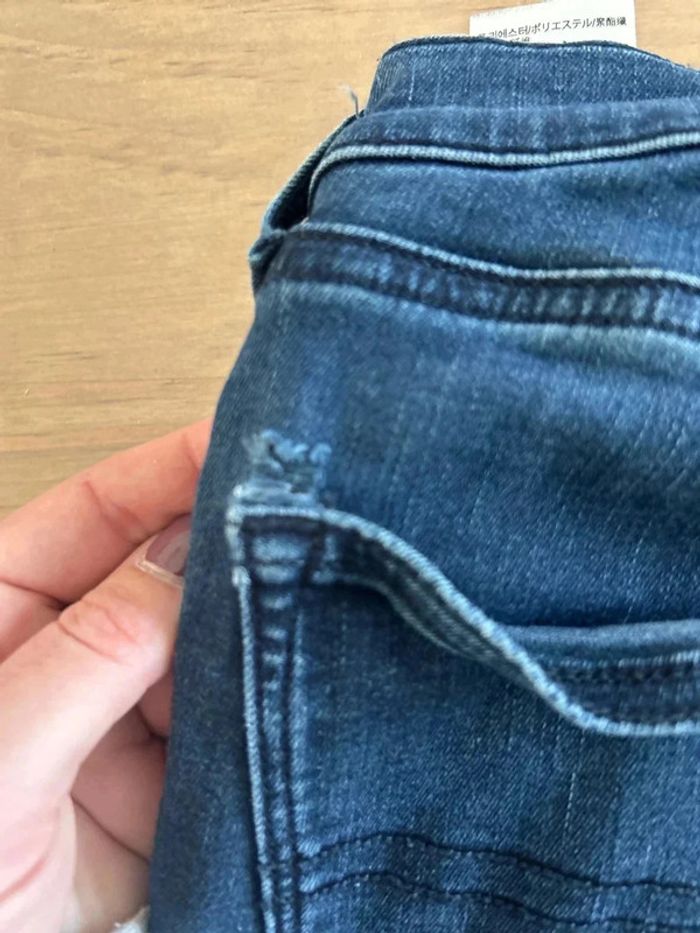 Il y a des petits trous au niveau des poches arrières sinon très bon état Taille 27/30 Mid Rise skinny