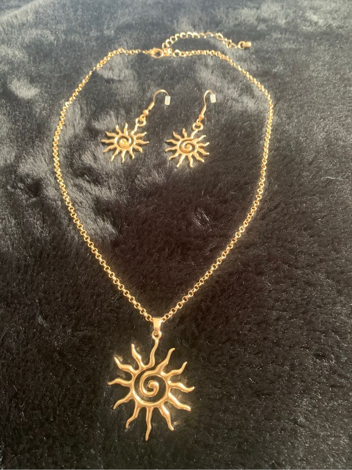 Magnifique parure collier et BO soleil neuf Envoi rapide 📦 N’hésitez pas à consulter mon dressing pour regrouper vos achats car beaucoup d’articles à petits prix 😊