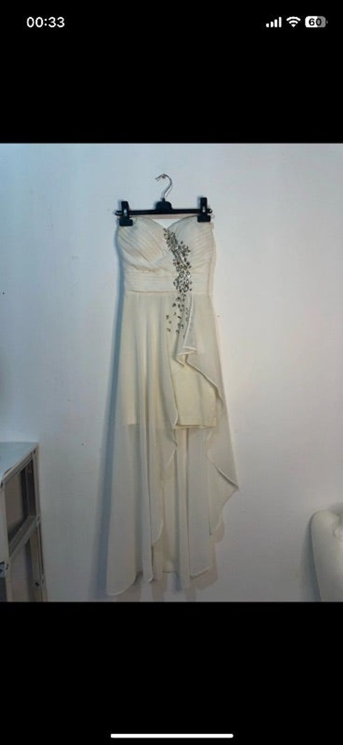 Robe bustier blanche On a rajouter les petits strass rouge Porté 1 fois à un mariage Légère tache sous les aisselles Encore en très bon état ! Taille S Doublure interne Un peu passé #laurahrv7828robes