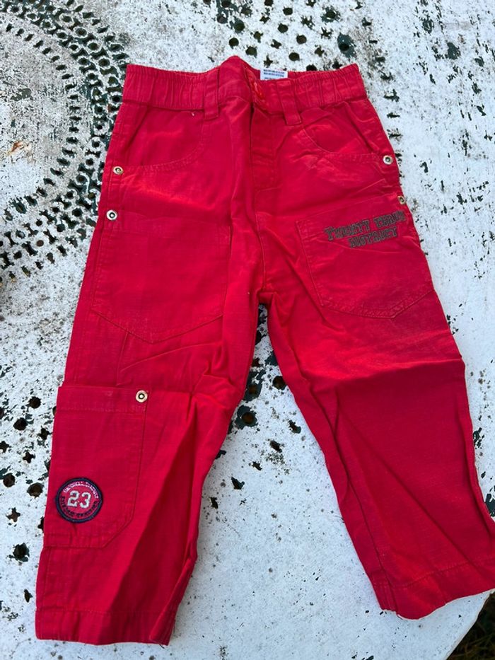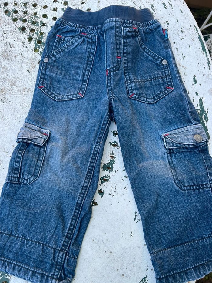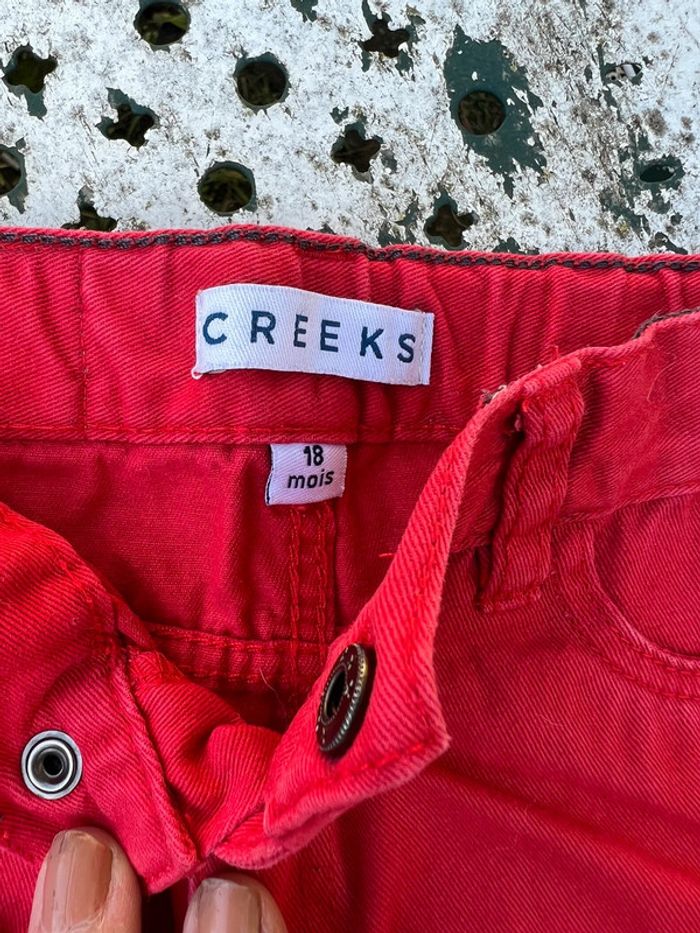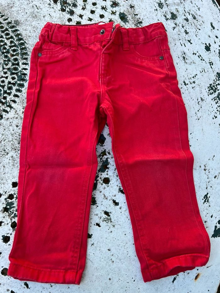 4 pantalons : 3 jeans et un pantalon rouge marques différentes ( orchestra, creeks) #nathalied86garcon18mois #creeks #creeks18moisgarcon #orchestra #orchestra18moisgarcon #lotpantalongarcon