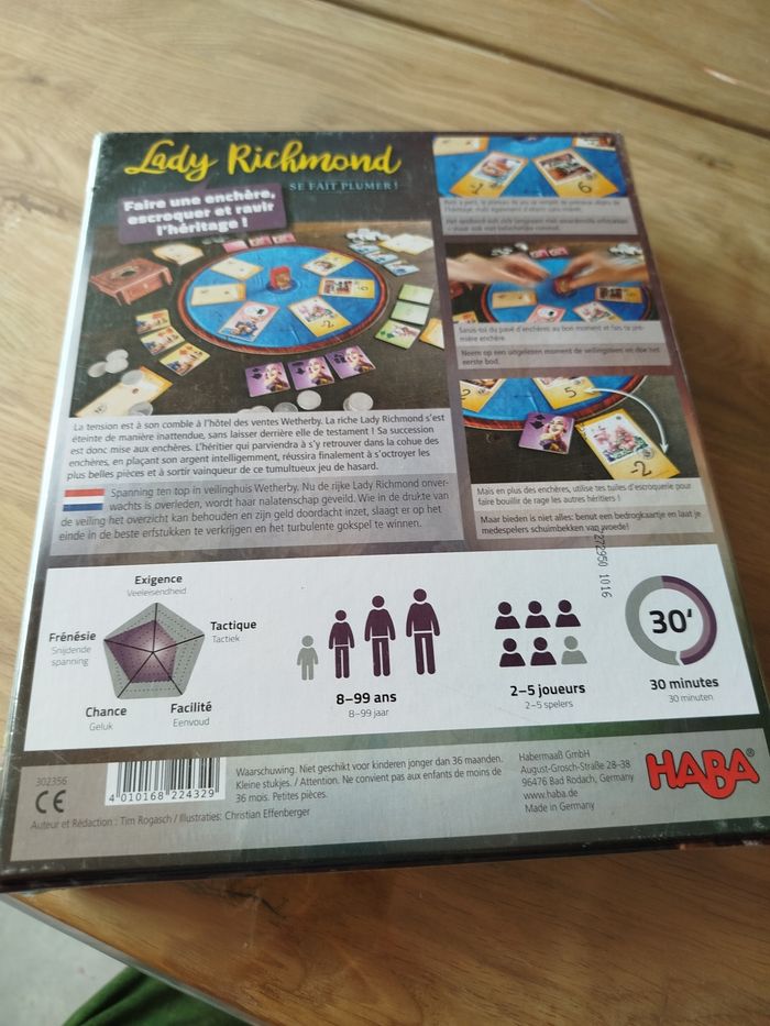 Jeu de société Lady Richmond se fait plumer ! Marque haba neuf sous blister