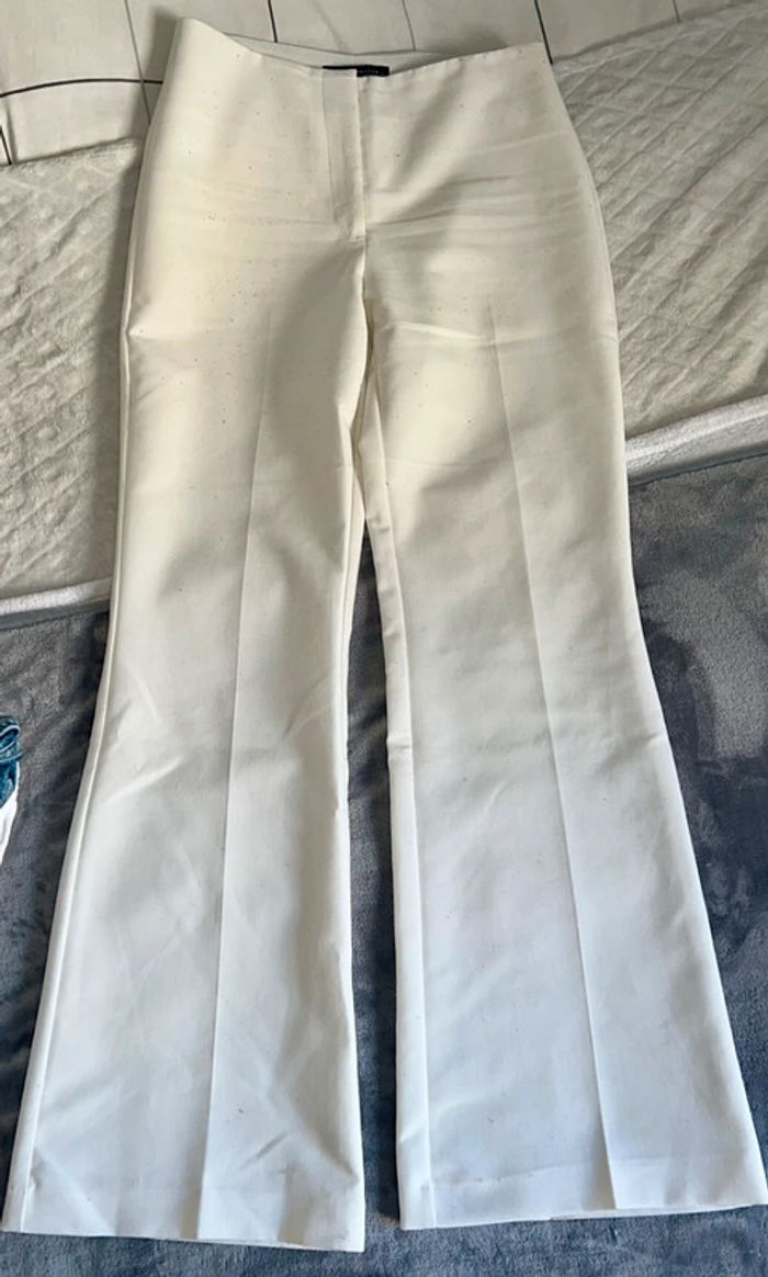 Pantalon blanc, parfait état, pas de tache ou de trou. Coupe large et long. Encore en vente sur le site actuellement.