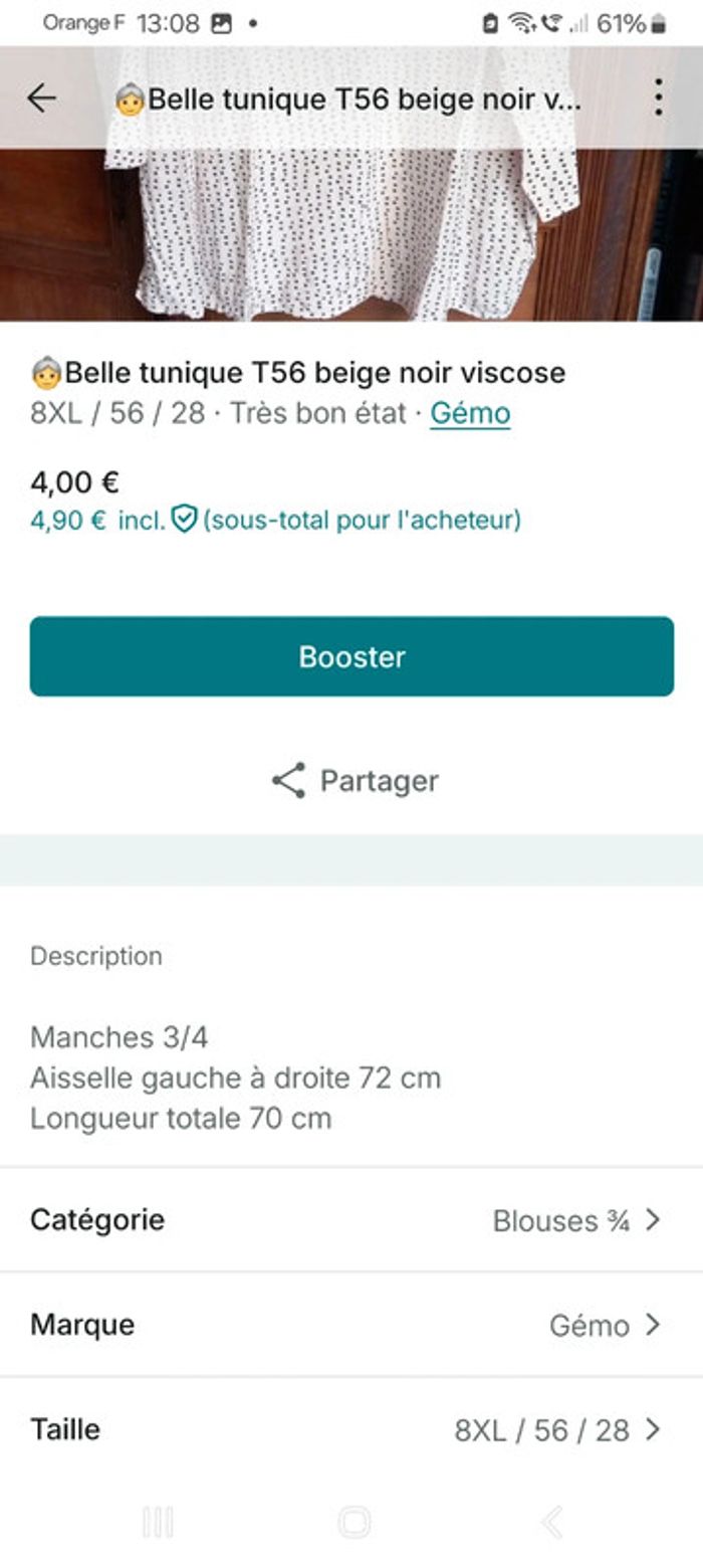 👵tunique polyester a pois T56 Gemo