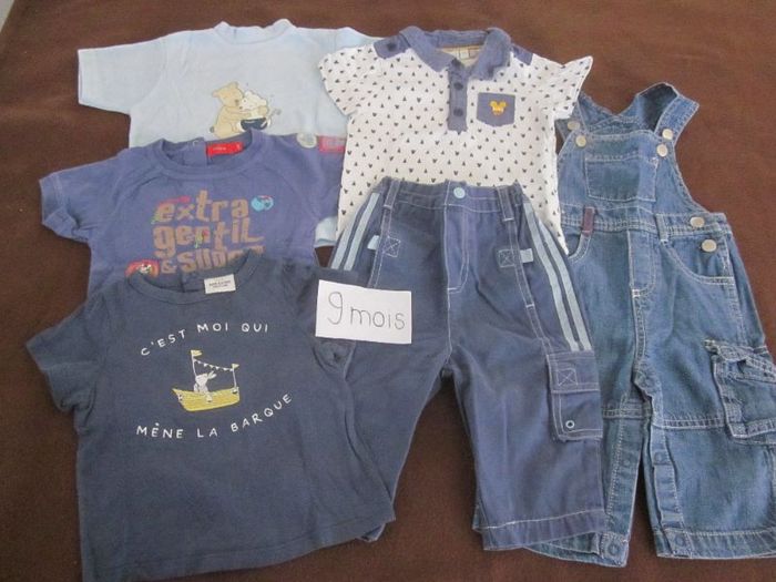 9 mois, salopette + pantalon + polo + 3 hauts mc, disney, tissaia, tao, kimbaloo