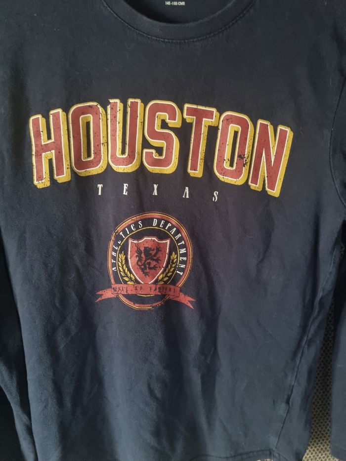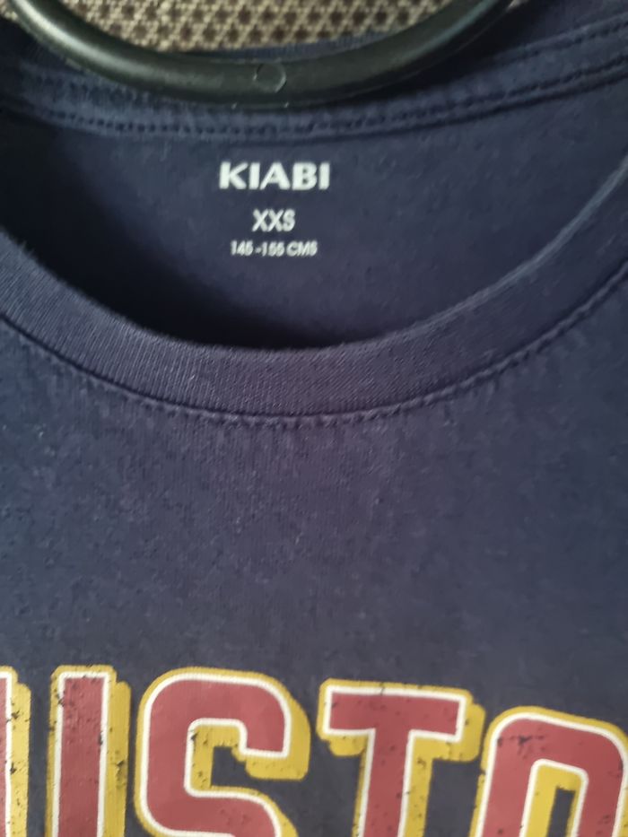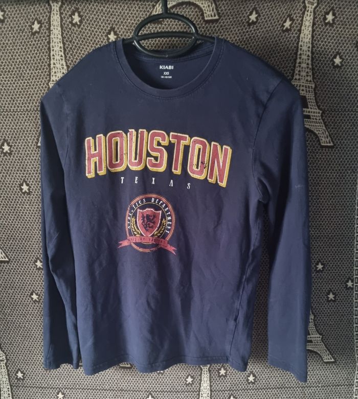 T-shirt imprimé avec écriture à manches longues, taille XXS 12ans marque Kiabi, légère tache et mini trou voir photos.