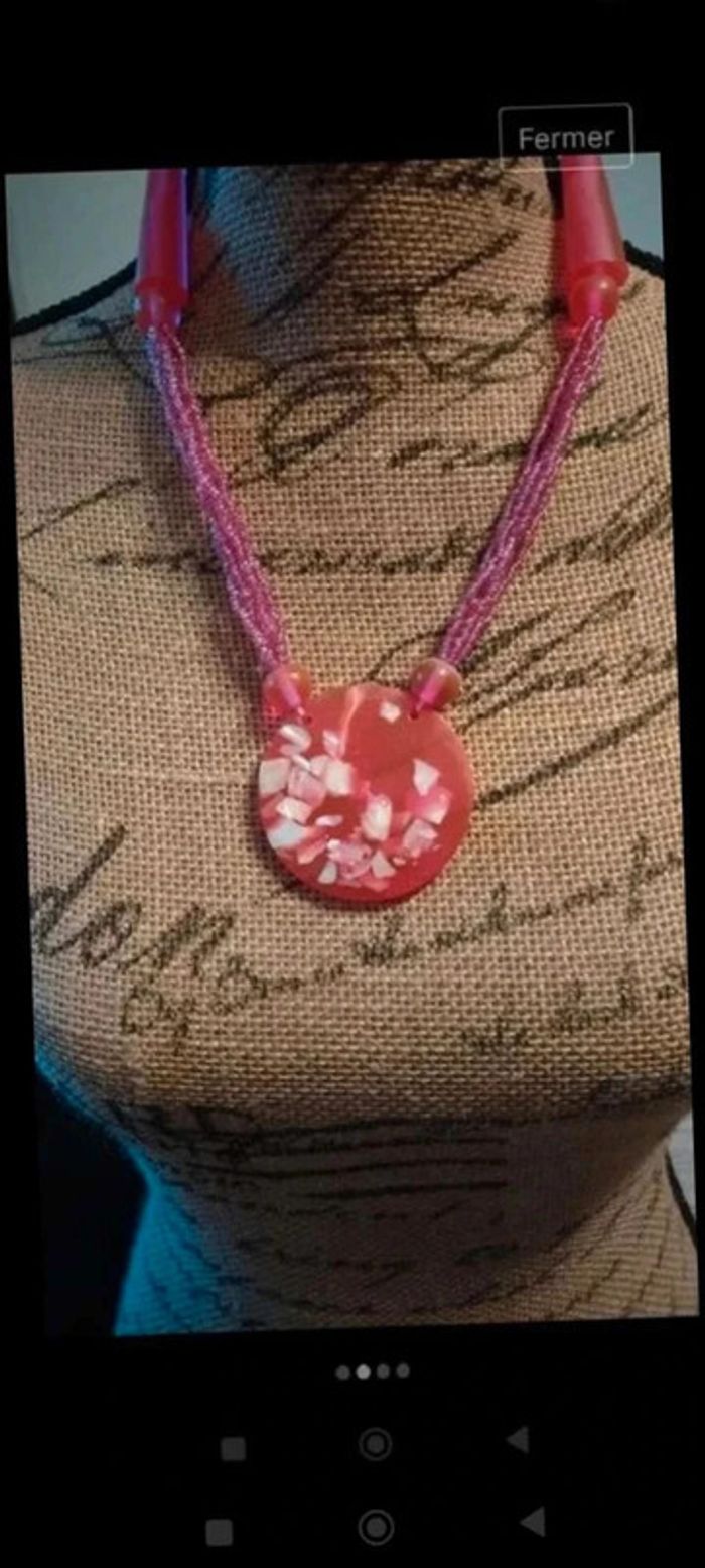 Collier  pendentif  rose femme perles fantaisie : accessoire élégant  et tendance - photo numéro 3