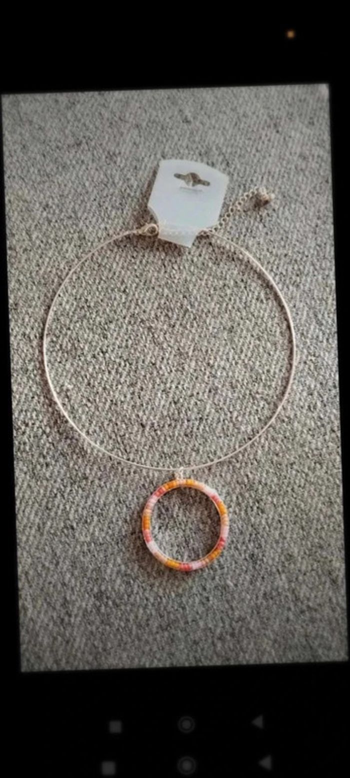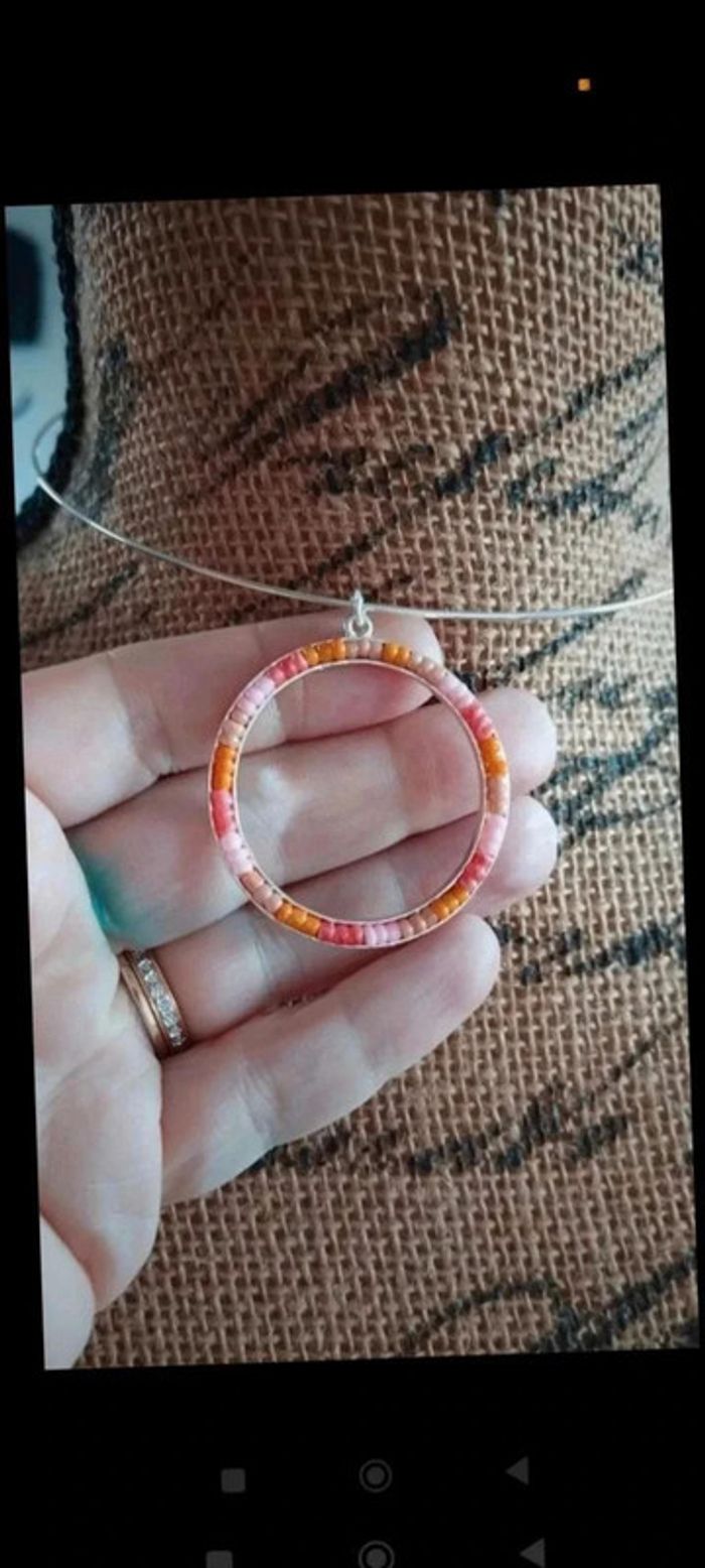 Collier ras  de cou perles rose argenté - photo numéro 2