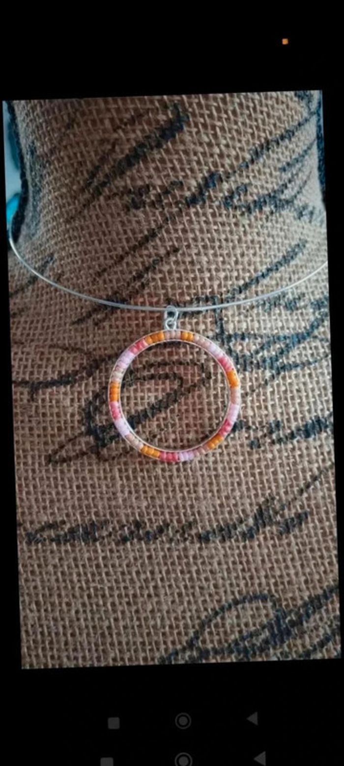 Collier ras  de cou perles rose argenté - photo numéro 1
