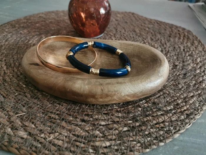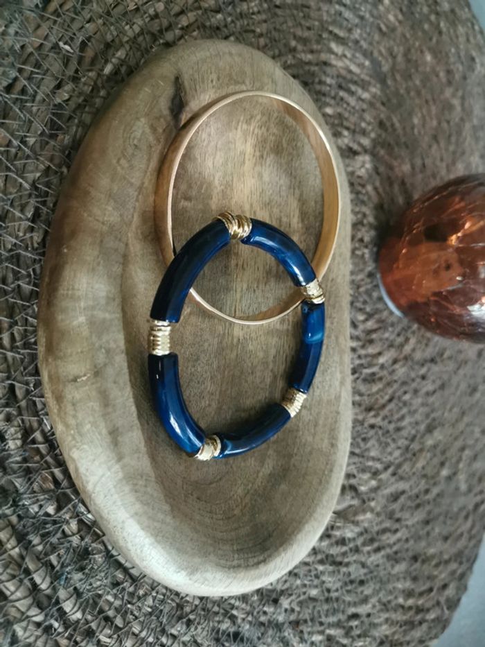 Duo de bracelet doré et perles bleues marine - photo numéro 2