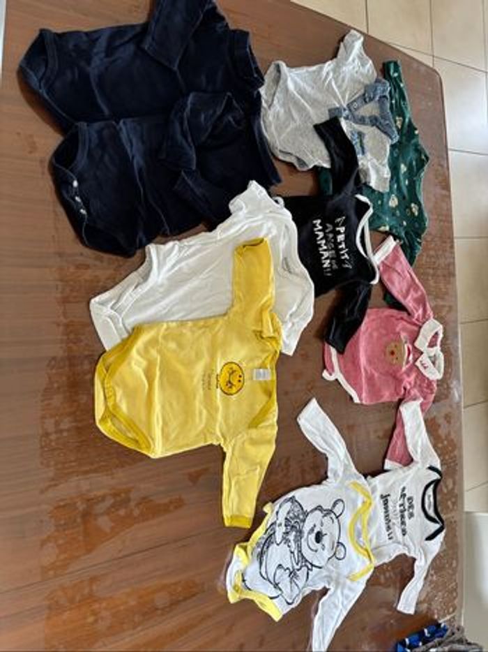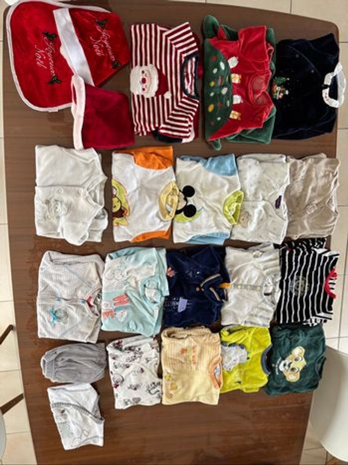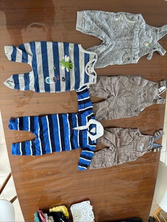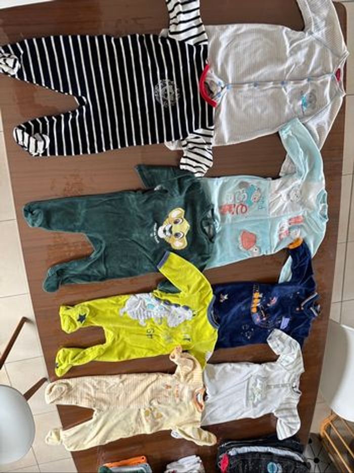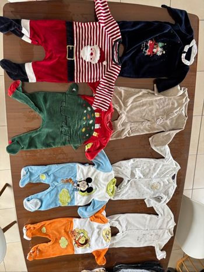 Lot de 57 vêtements taille 6 mois Vêtements hiver comprenant: 18 pyjamas 11 bodys 8 ensembles t-shirt et pantalon ou salopettes 9 pantalons 4 hauts manches longues 4 pulls 2 bonnets de noël 1 bavoir de noël 1 combinaison d’hiver très chaude et douce (les petits adorent!) Vendus sans la caisse. Marques diverses dont: sergent major Mayoral, orchestra, disney, petit bateau, berlingot, kiabi, 1 Ralph Lauren.