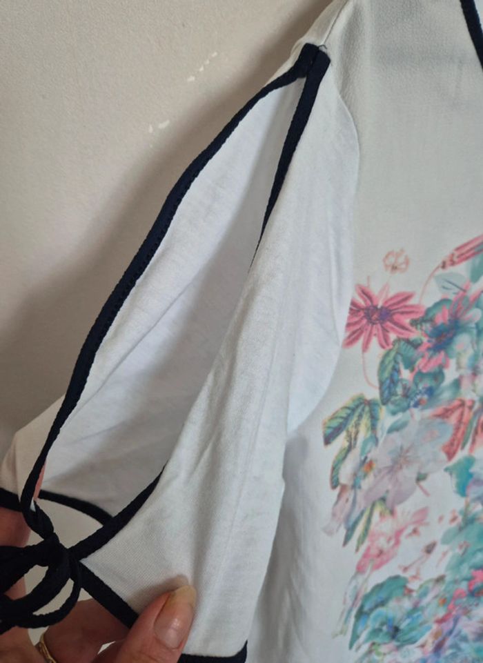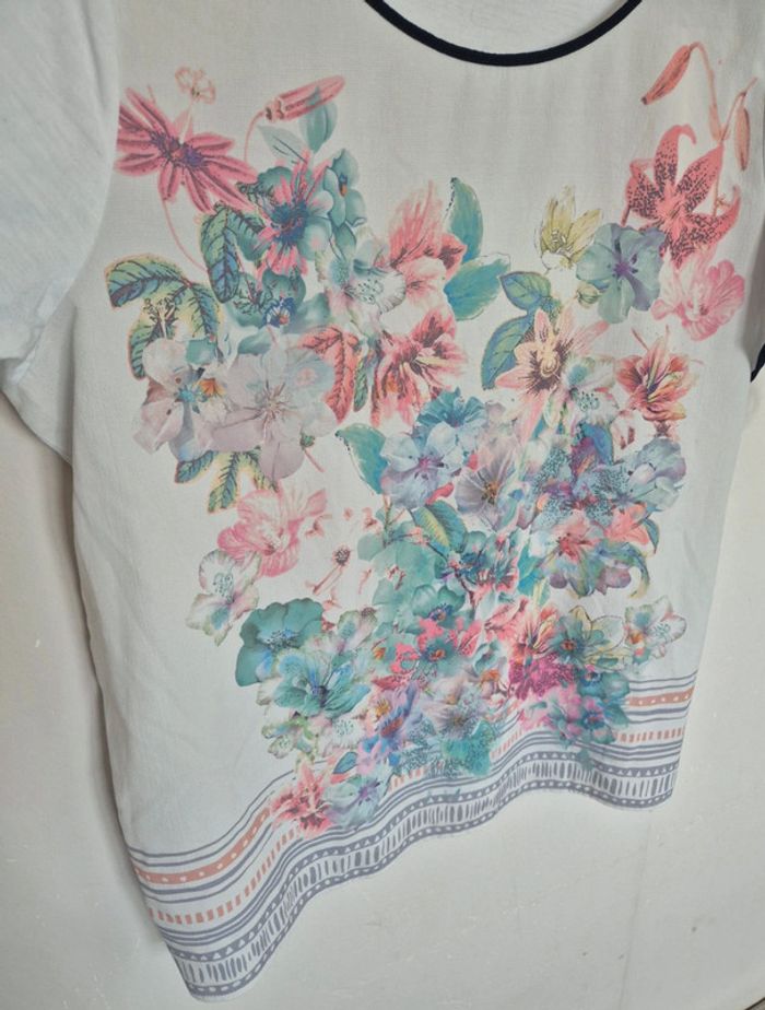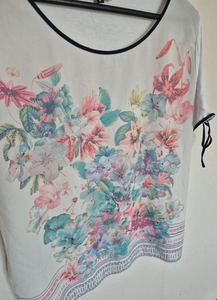 📌 Lot 20% de remise pour l'achat de 5 articles, suite ... Blouse blanche avec des fleurs, liseré noir sur le bord des manches, très fluide, ➡️Largeur à plat sous les bras  55 cm ➡️Longueur 65 cm ➡️98% polyester 2% élasthanne ⭐ Excellent état ✈Envoi rapide des colis 💗 Abonnez vous à mon profil, nombreux articles ajoutés régulièrement ! 🌸 Tapez Laetitresors pour voir mes annonces #laetitresors_tshirt42 #tshirt #jacqueline #riu #manche #courte #blanc #fleurs #rose #noir #leger #fluide #top #laetitresors