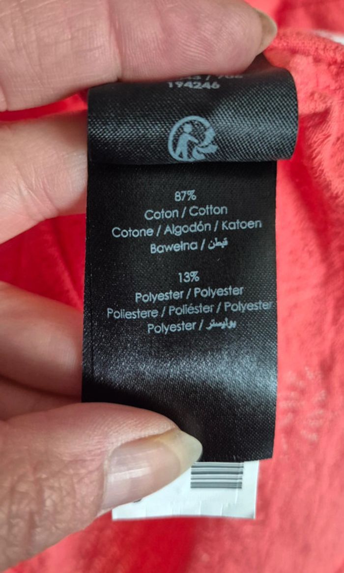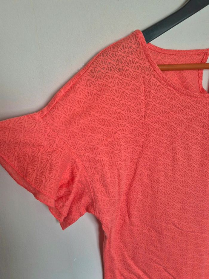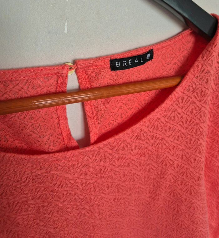 📌 Lot 20% de remise pour l'achat de 5 articles, suite .. T-shirt couleur corail, manche courte, motif discret ➡️Largeur à plat sous les bras  49 cm ➡️Longueur 57 cm ➡️87% coton 13% polyester ⭐ Excellent état ✈Envoi rapide des colis 💗 Abonnez vous à mon profil, nombreux articles ajoutés régulièrement ! 🌸 Tapez Laetitresors pour voir mes annonces #laetitresors_tshirt40 #tshirt #breal #corail #manche #courte #ajoure #top #blouse #laetitresors
