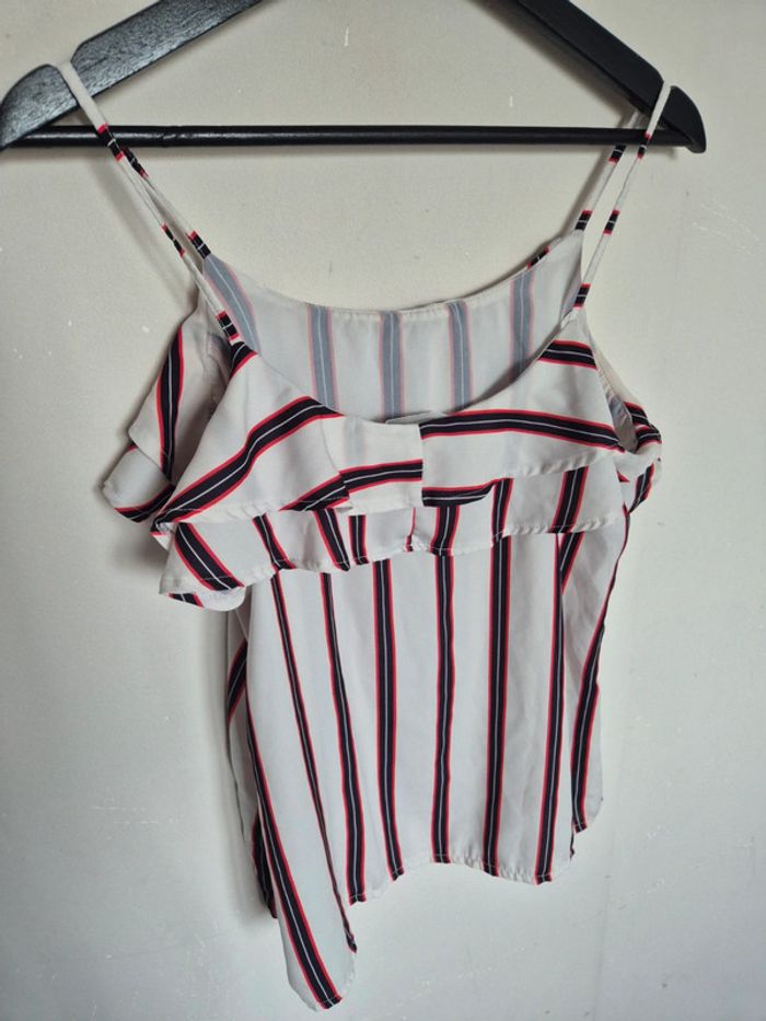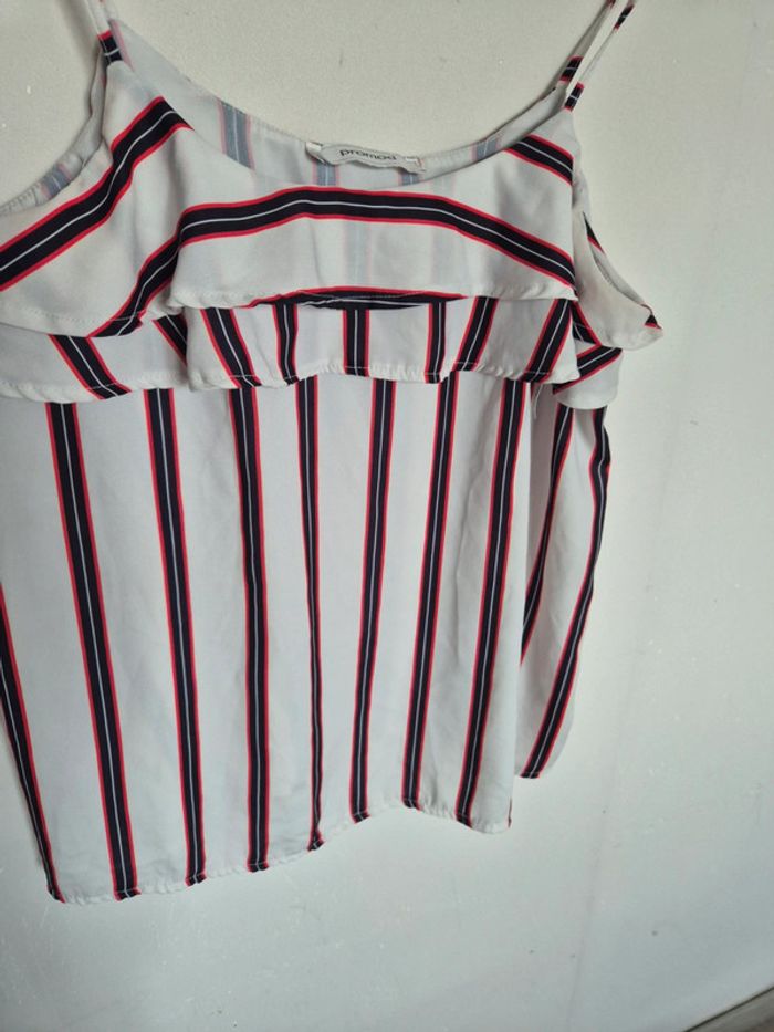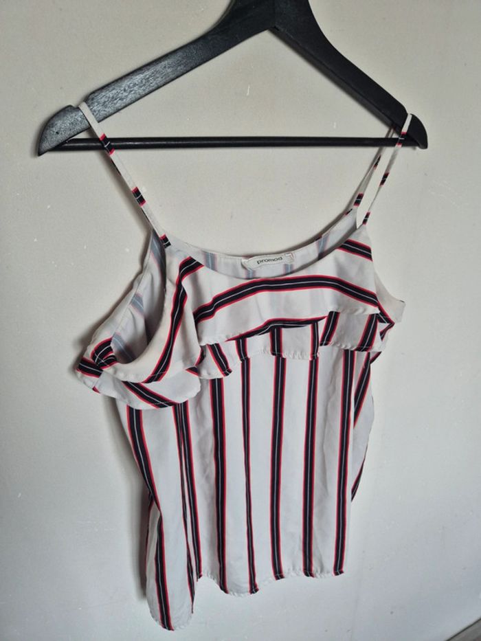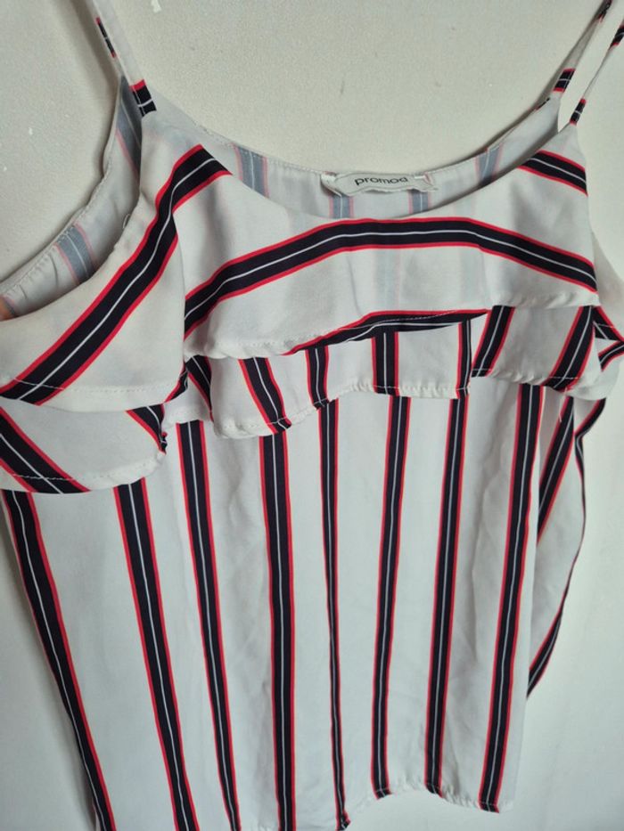 📌 Lot 20% de remise pour l'achat de 5 articles, suite ... Débardeur blanc à rayure rouge, fine bretelle et volant sur le devant, ➡️Largeur à plat sous les bras  48 cm ➡️Longueur 56 cm ➡️ 100 % polyester ⭐ Excellent état ✈Envoi rapide des colis 💗 Abonnez vous à mon profil, nombreux articles ajoutés régulièrement ! 🌸 Tapez Laetitresors pour voir mes annonces #laetitresors_debardeur38 #debardeur #promod #blanc #rayure #fine #bretelle #volant #noir #fluide #laetitresors