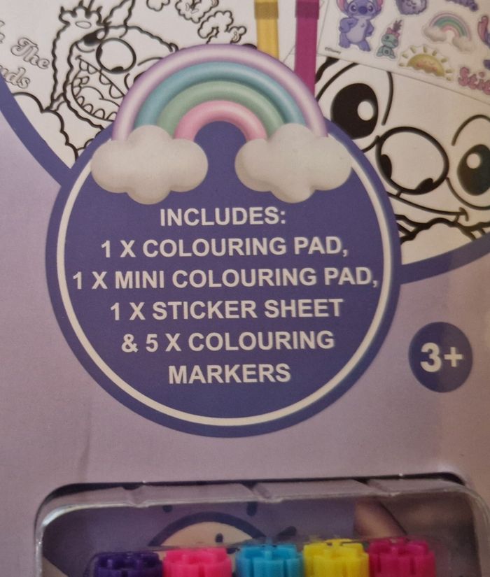 Neuf avec étiquette Contient : 1 cahier de coloriage, 1 mini cahier de coloriage, 1 feuille d'autocollants et 5 feutres de coloriage