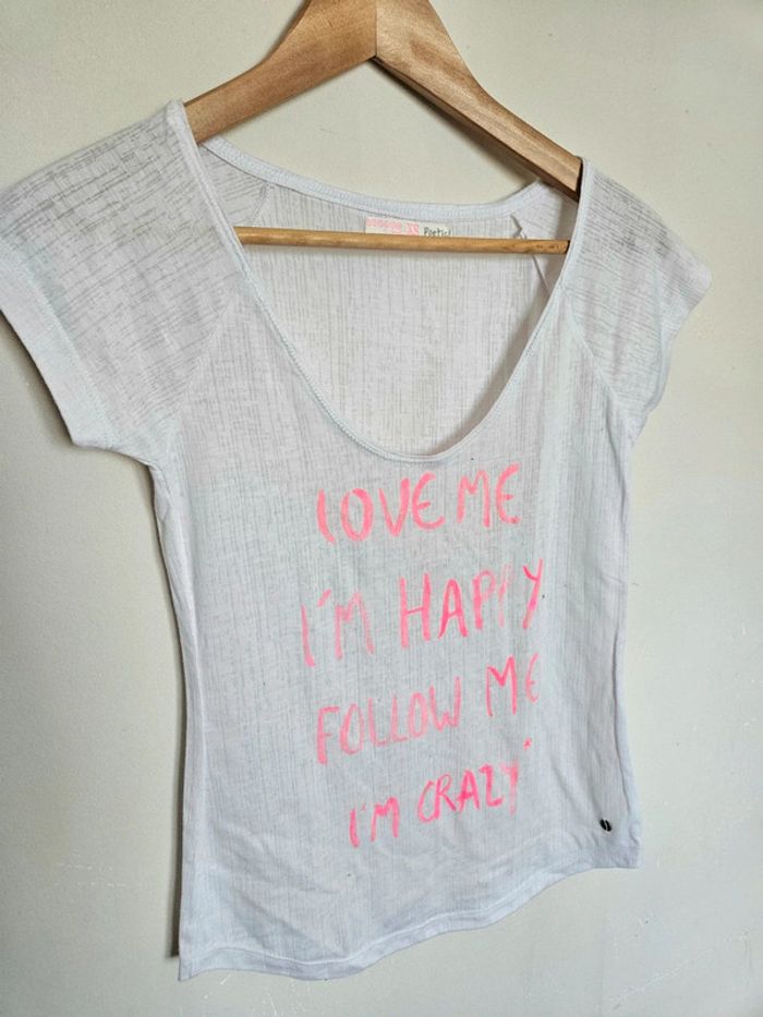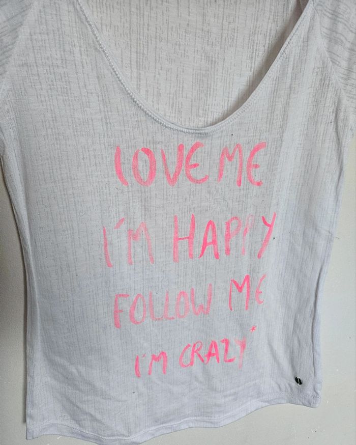 📌 Lot 20% de remise pour l'achat de 5 articles T-shirt blanc avec inscription "Love Me i'm happy follow Me i'm crazy" ➡️Largeur à plat sous les bras 41 cm ➡️Longueur 65 cm ⭐Etat NEUF ✈Envoi rapide des colis 💗 Abonnez vous à mon profil, nombreux articles ajoutés régulièrement ! #laetitresors_tshirt34 #tshirt #blanc #bonobo #neuf #crazy #love #manche #courte #rose #xs #laetitresors