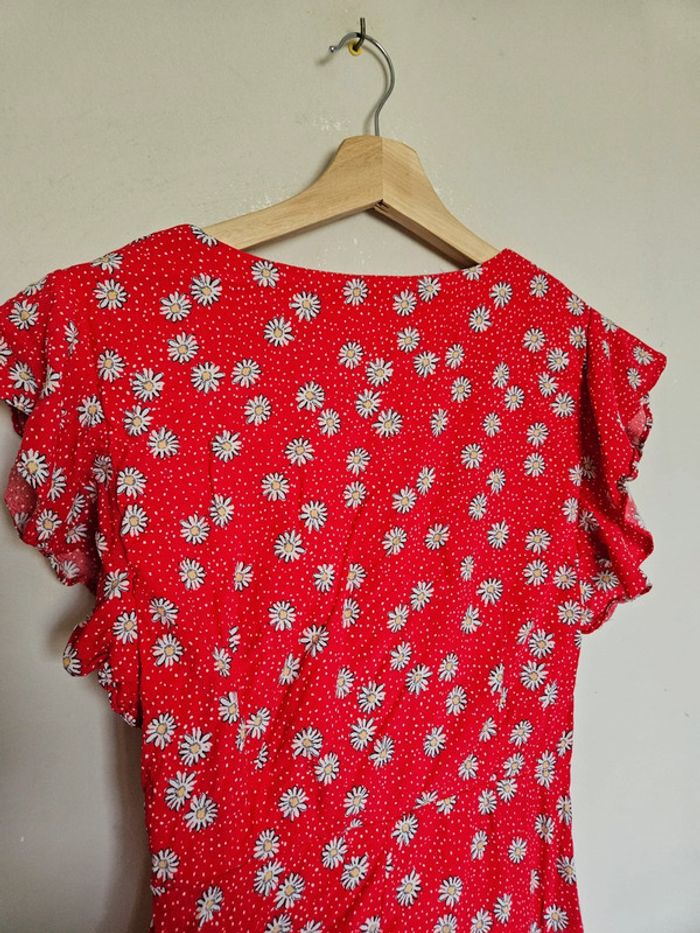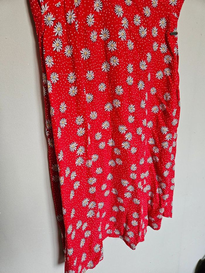 Robe rouge à fleur blanche, volant sur les manches ➡️Largeur à plat sous les bras 40 cm