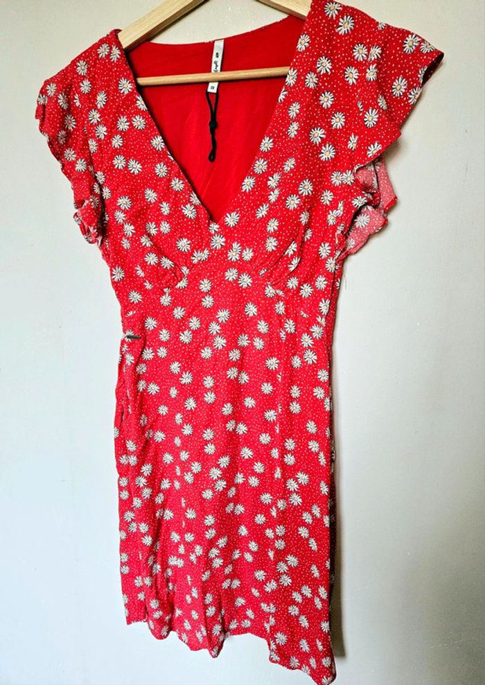 #robe #pepe #jean #rouge #fleur #paquerette #manche #courte #volant #fluide #laetitresors #été