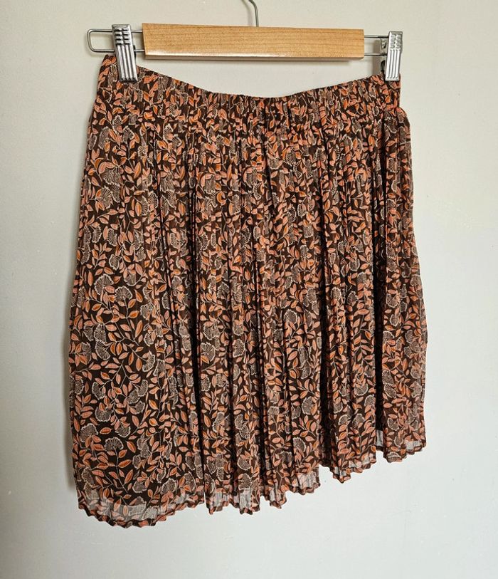 Jupe en voile marron et orange à motif fleurie, taille élastique