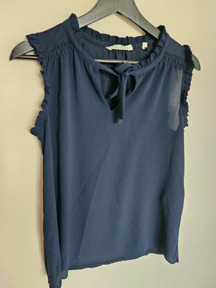 📌 Lot 20% de remise pour l'achat de 5 articles, suite ... Blouse Bleu marine, volant sur le bord des bretelles, lien à nouer sur le devant, ➡️Largeur à plat sous les bras  44 cm ➡️Longueur 60 cm ➡️ 50 % modal 50 % coton ⭐ Excellent état ✈Envoi rapide des colis 💗 Abonnez vous à mon profil, nombreux articles ajoutés régulièrement ! 🌸 Tapez Laetitresors pour voir mes annonces #laetitresors_debardeur34 #blouse #bleu #marine #debardeur #voile #top #volant #nafnaf #uni #chic #mousseline #laetitresors