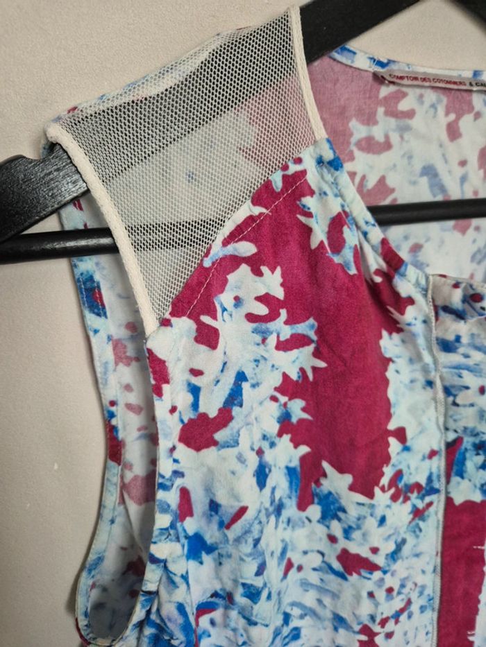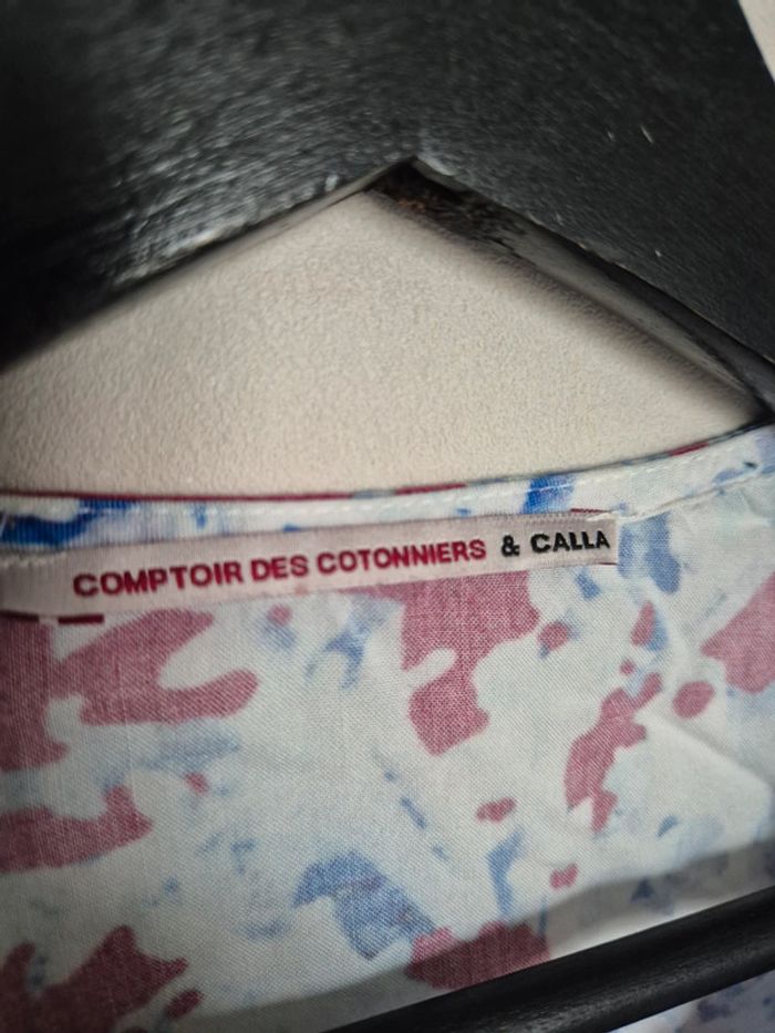 #robe #comptoir #cotonniers #calla #large #bretelle #bouton #été #bleu #blanc #rose #fleurs #rouge