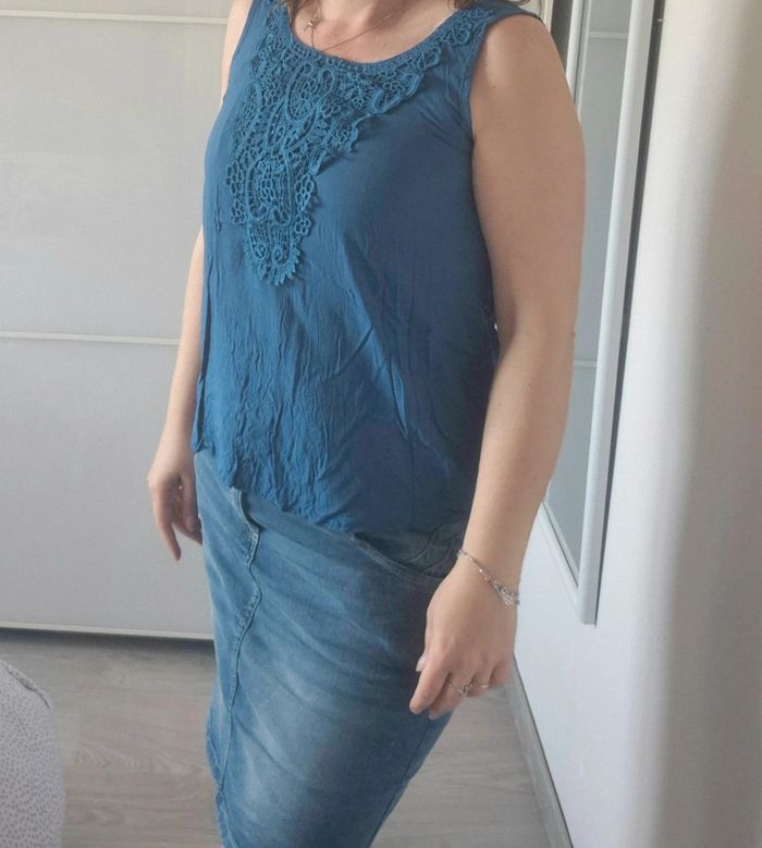 #debardeur #bleu #dentelle #esmara #bretelle #top #tshirt #polyester