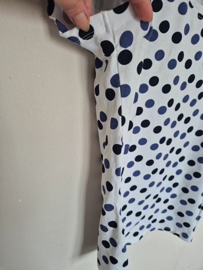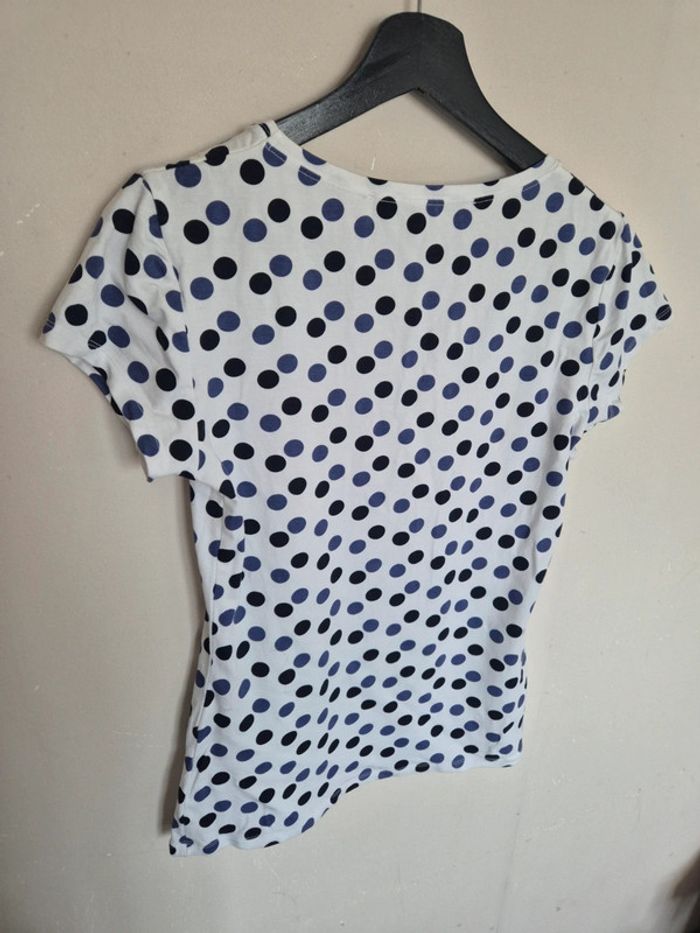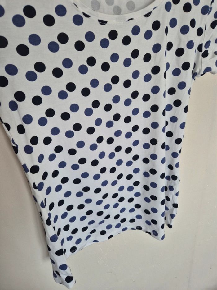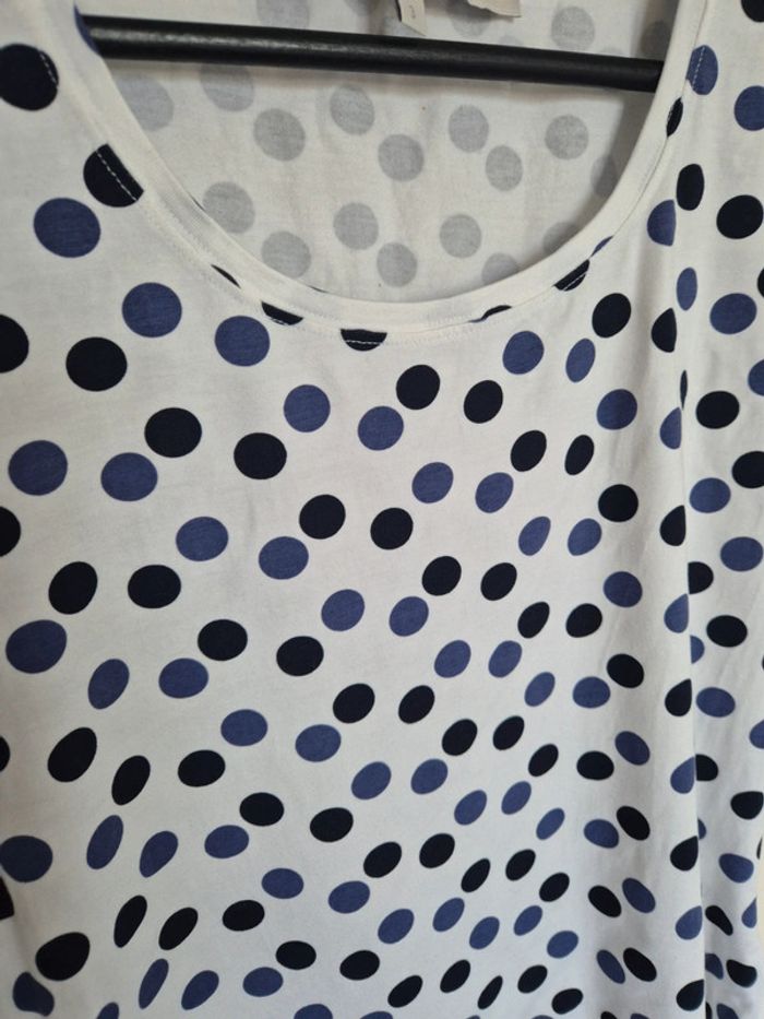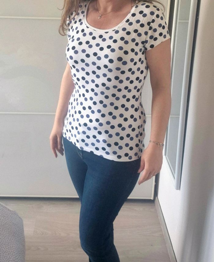 📌 Lot 20% de remise pour l'achat de 5 articles, suite ... T-shirt blanc avec des rond bleu et noir, manche courte, ➡️Largeur à plat sous les bras  50 cm ➡️Longueur 58 cm ➡️95% viscose 5% élasthanne ⭐ Excellent état ✈Envoi rapide des colis 💗 Abonnez vous à mon profil, nombreux articles ajoutés régulièrement ! 🌸 Tapez Laetitresors pour voir mes annonces #laetitresors_tshirt40 #tshirt #la #fee #maraboutée #rond #bleu #noir #manche #courte #top #laetitresors