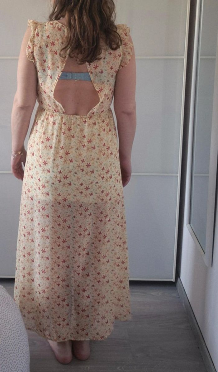 📌 Lot 20% de remise pour l'achat de 5 articles, suite ... Robe longue jaune clair, avec des fleurs rouge, en voile, doublée sur le haut jusqu' à mi cuisse, ouverture dans le dos, très fluide et légère, parfaite pour les beaux jours, ➡️Largeur à plat sous les bras  46 cm ➡️Longueur 130 cm ➡️ Polyester au viscose ⭐ Excellent état ✈Envoi rapide des colis 💗 Abonnez vous à mon profil, nombreux articles ajoutés régulièrement ! 🌸 Tapez Laetitresors pour voir mes annonces #laetitresors_robe36 #robe #longue #jaune #rouge #rose #fleur #voile #lili #lala #ouverture #dox #manche #courte #legère #chic #ceremonie #mariage #fête #cocktail #laetitresors