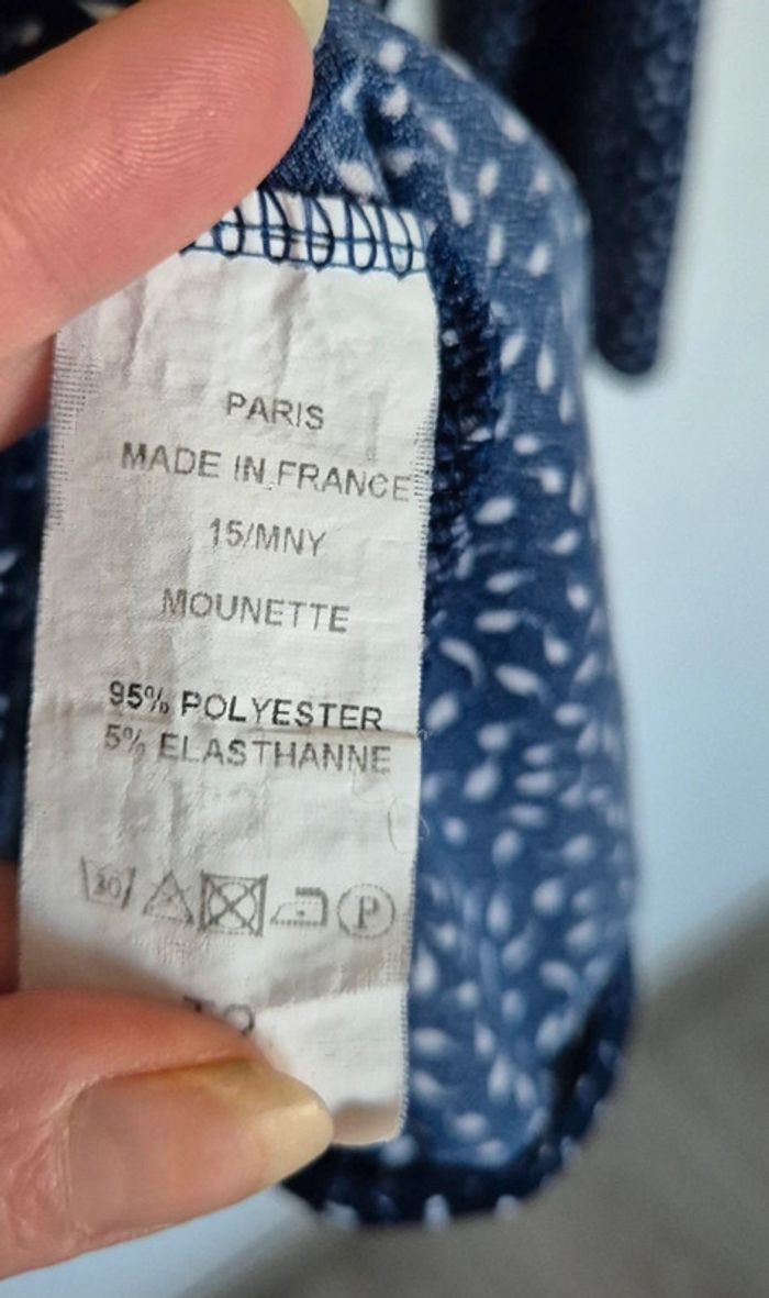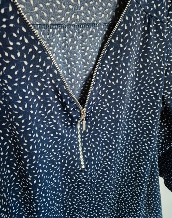 #blouse #newco #bleu #pois #fermeture #eclair #zip #manche #elastique #bas #ressere #top #tshirt #chemisier #chemise