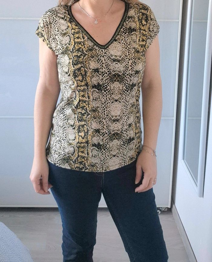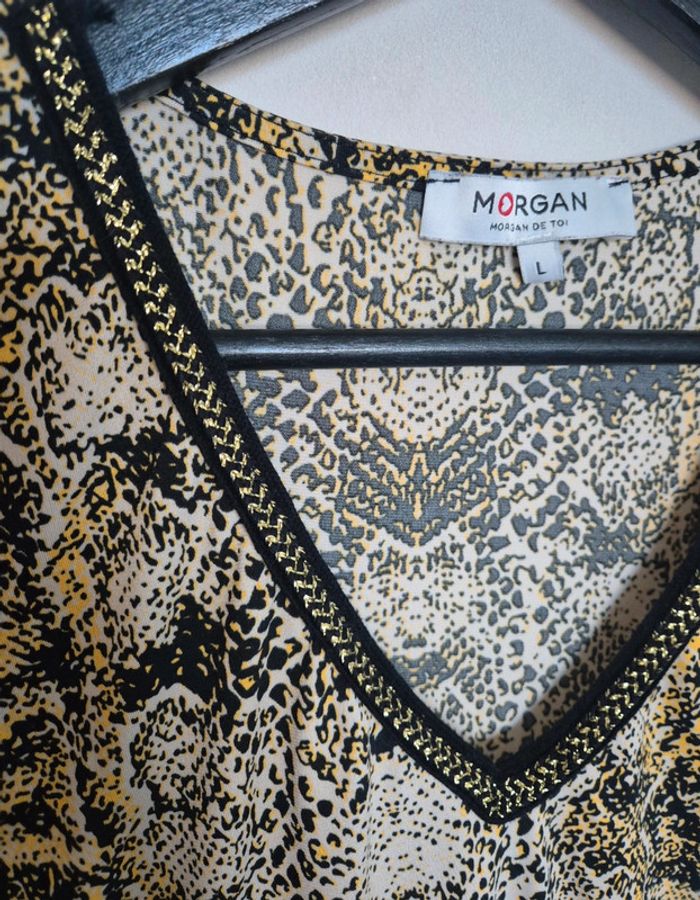 📌 Lot 20% de remise pour l'achat de 5 articles, suite ... T-shirt noir et jaune, liseré brillant sur le col, manche courte, ➡️Largeur à plat sous les bras  49 cm ➡️Longueur 60 cm ⭐ Excellent état ✈Envoi rapide des colis 💗 Abonnez vous à mon profil, nombreux articles ajoutés régulièrement ! 🌸 Tapez Laetitresors pour voir mes annonces #laetitresors_tshirt40 #tshirt #morgan #jaune #noir #manche #courte #top #brillant #laetitresors