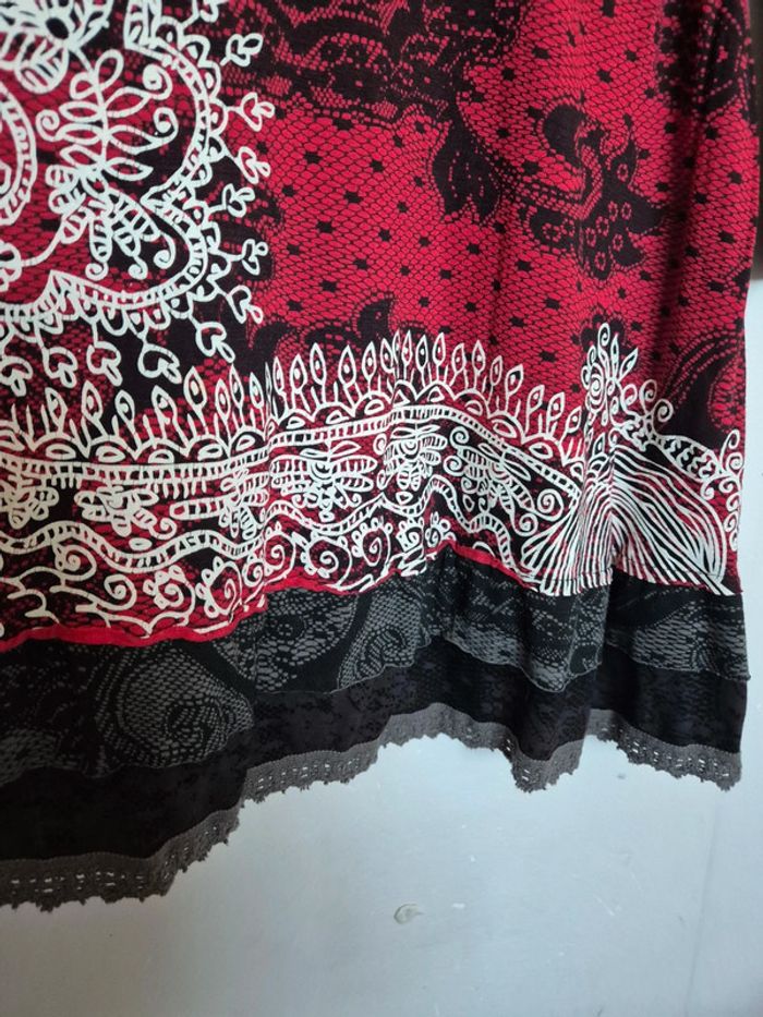 #robe #rouge #blanc #noir #fleur #desigual #manche #longue #evasé #fluide