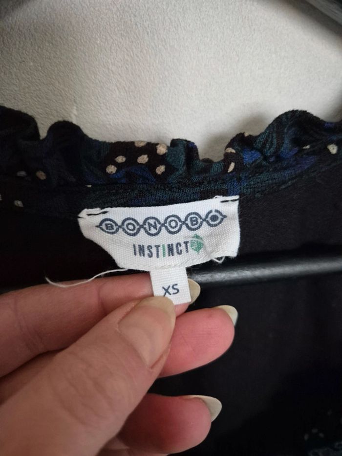 #blouse #bleu #noir #jaune #bonobo #manche #longue #chemisier #chemise #top #tshirt