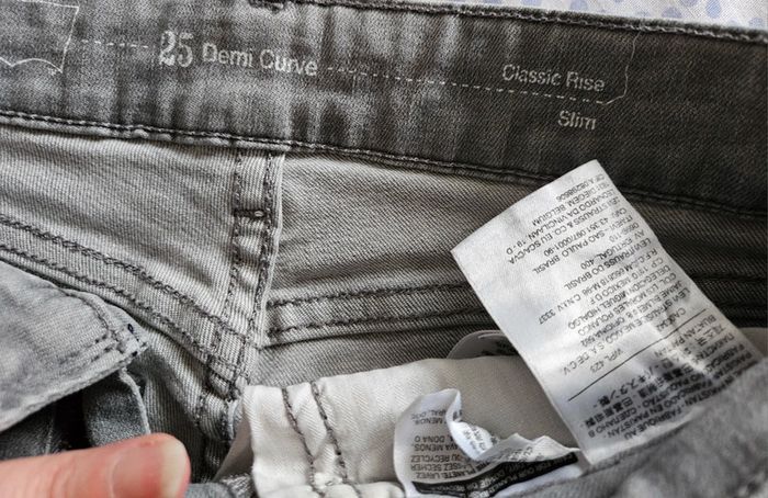ean Levis's Curve classic rise slim, de couleur gris clair ➡️Largeur de la taille 35 cm ➡️Longueur 96 cm ➡️ 91% coton 7% polyester 2% élasthanne ⭐Un petit trait sur blanc léger sur le jambe mais sinon Excellent état comme neuf 💗 Abonnez vous à mon profil, nombreux articles ajoutés régulièrement ! ✈Envoi rapide des colis💗 tapez laetitresors pour voir mes autres annonces 📌 Autres photo sur demande #jean #levis #curve #slim #gris