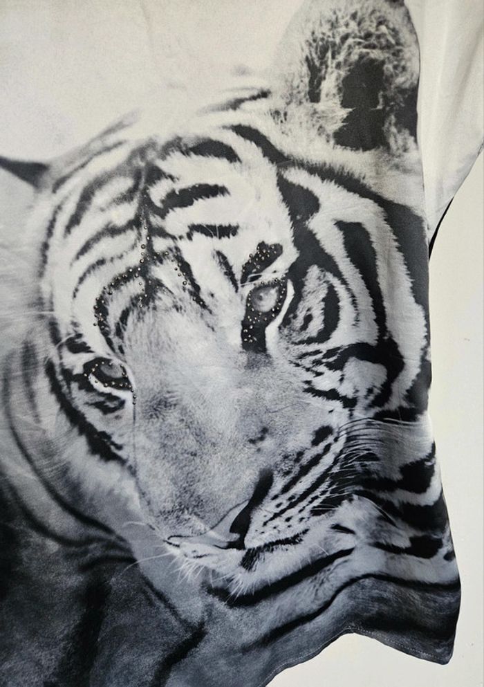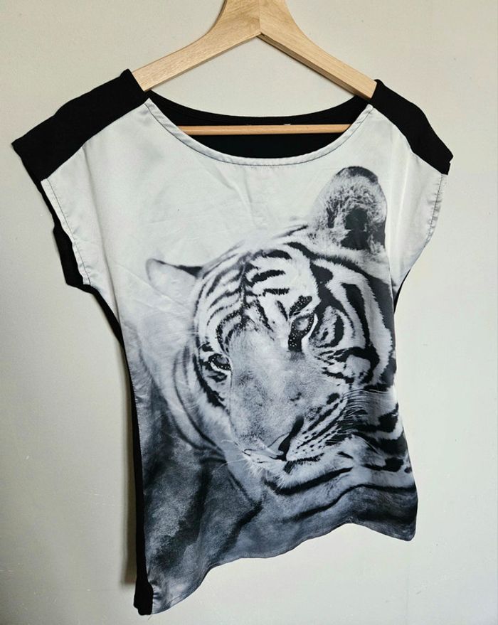 📌Lot 20% de remise pour l'achat de 5 articles T-shirt manche courte avec un jolie tigre sur le devant, bi matière ➡️Largeur à plat sous les bras 45 cm ➡️Longueur 59 cm ⭐Excellent état ✈Envoi rapide des colis 💗 Abonnez vous à mon profil, nombreux articles ajoutés régulièrement ! #laetitresors_tshirt36 #tshirt #noir #blanc #bi #matière #tigre #manche #courte #top #laetitresors